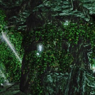 中央の岩は長い時間をかけて石化した木の幹をイメージしました