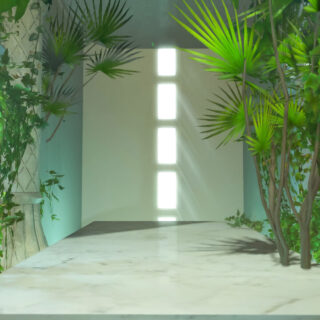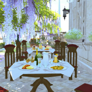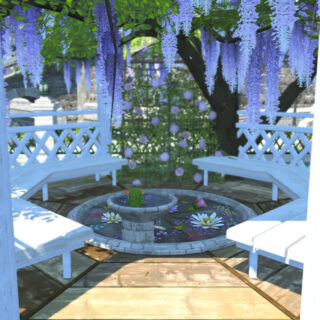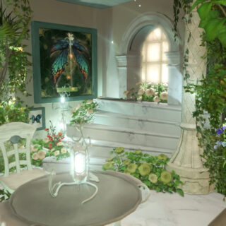 噴水のある白基調の植物に囲まれた空間です。日中の方が光源が多くなるためおすすめです。