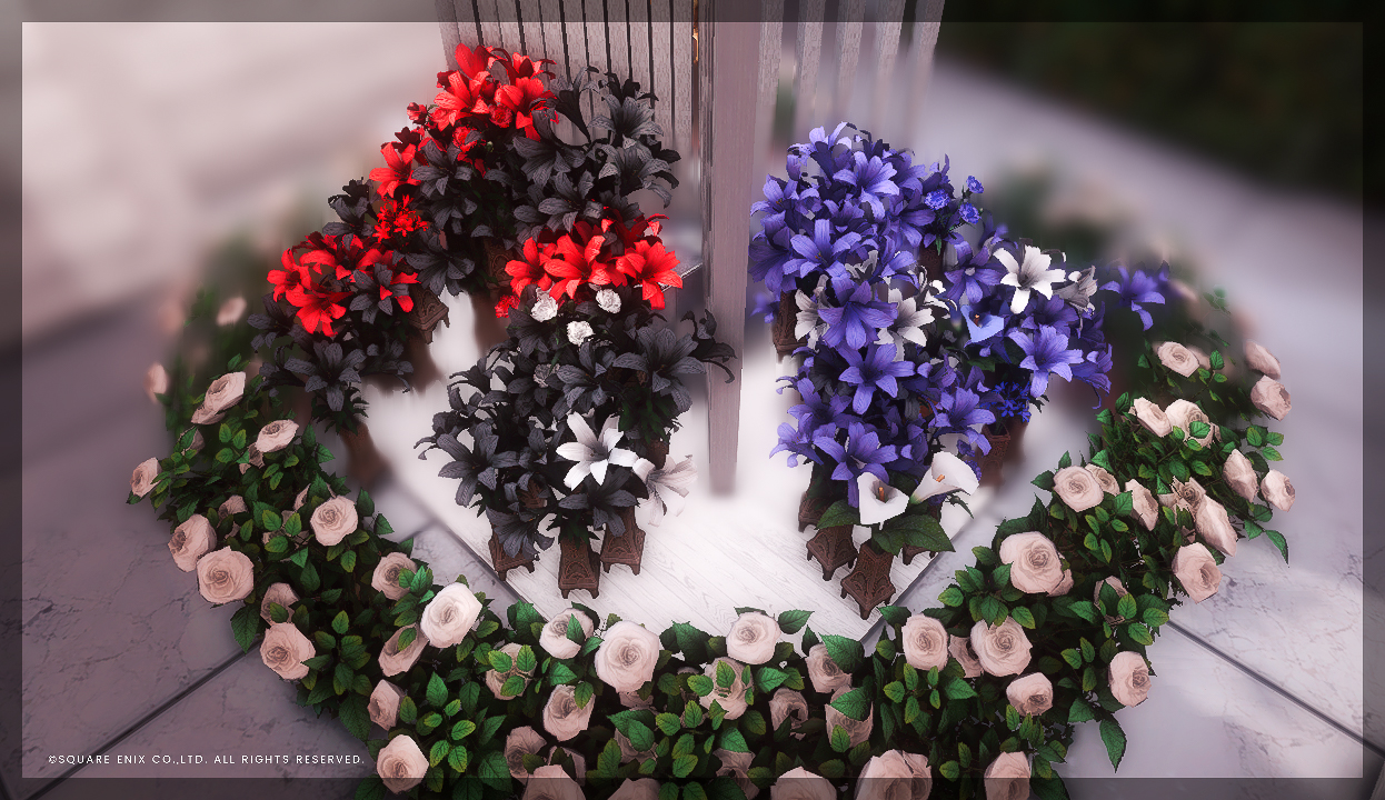 お部屋風:花の下にマカロンクッションがあるので、ララフェルさんはそこにお乗りください。