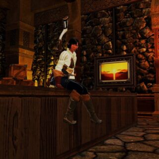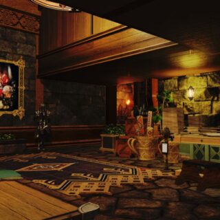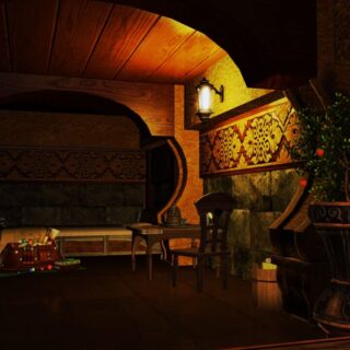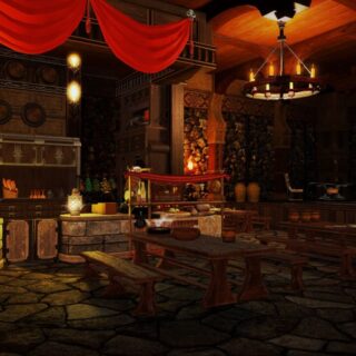ファンタジーのお約束、冒険者たちが集う宿屋兼酒場をイメージした内装です。