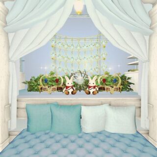 パステル調のお部屋に、クマ、うさぎ、モーグリのぬいぐるみや小物系を詰め込んだおもちゃのミニチュアハウスぽくなってます