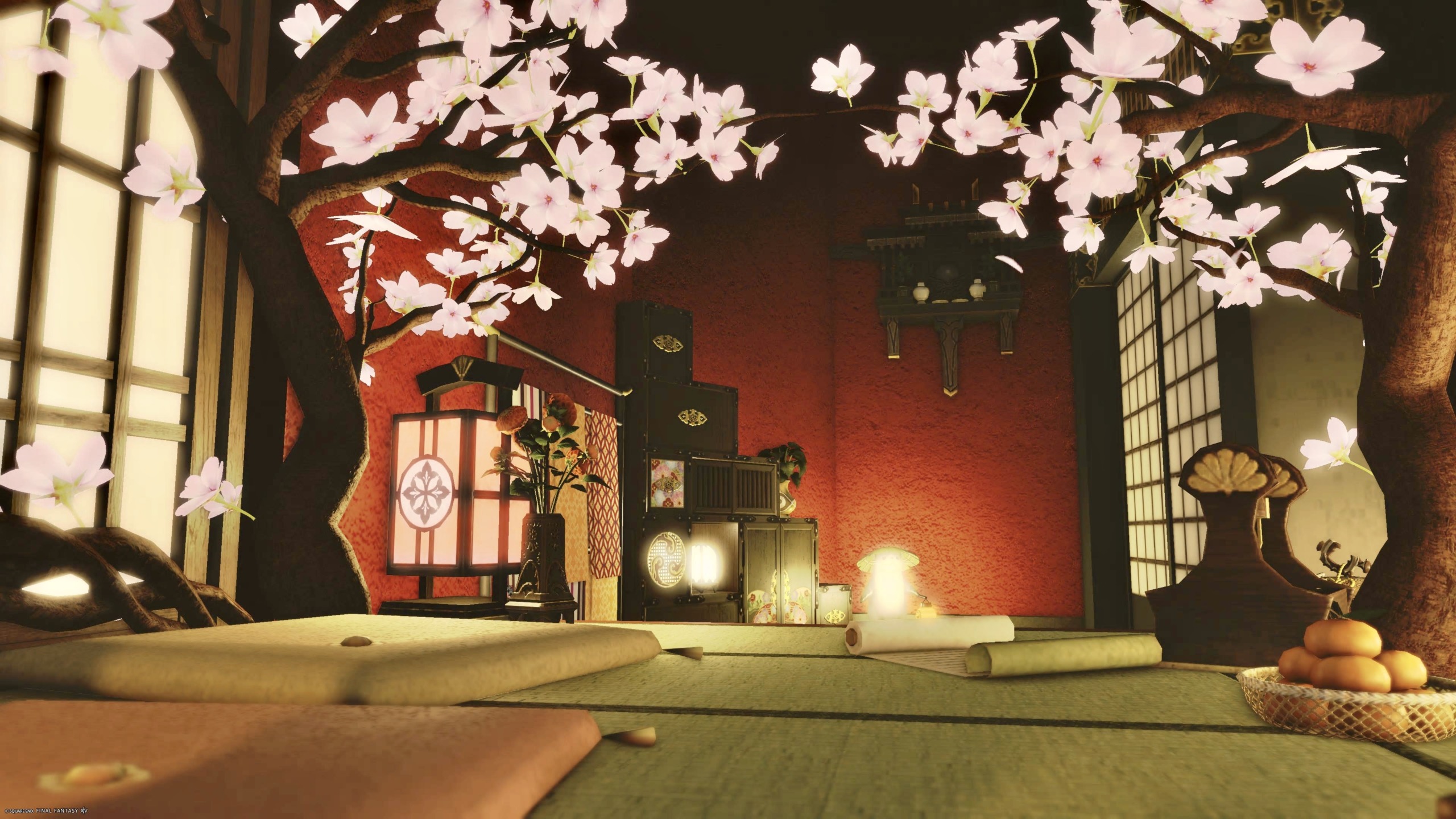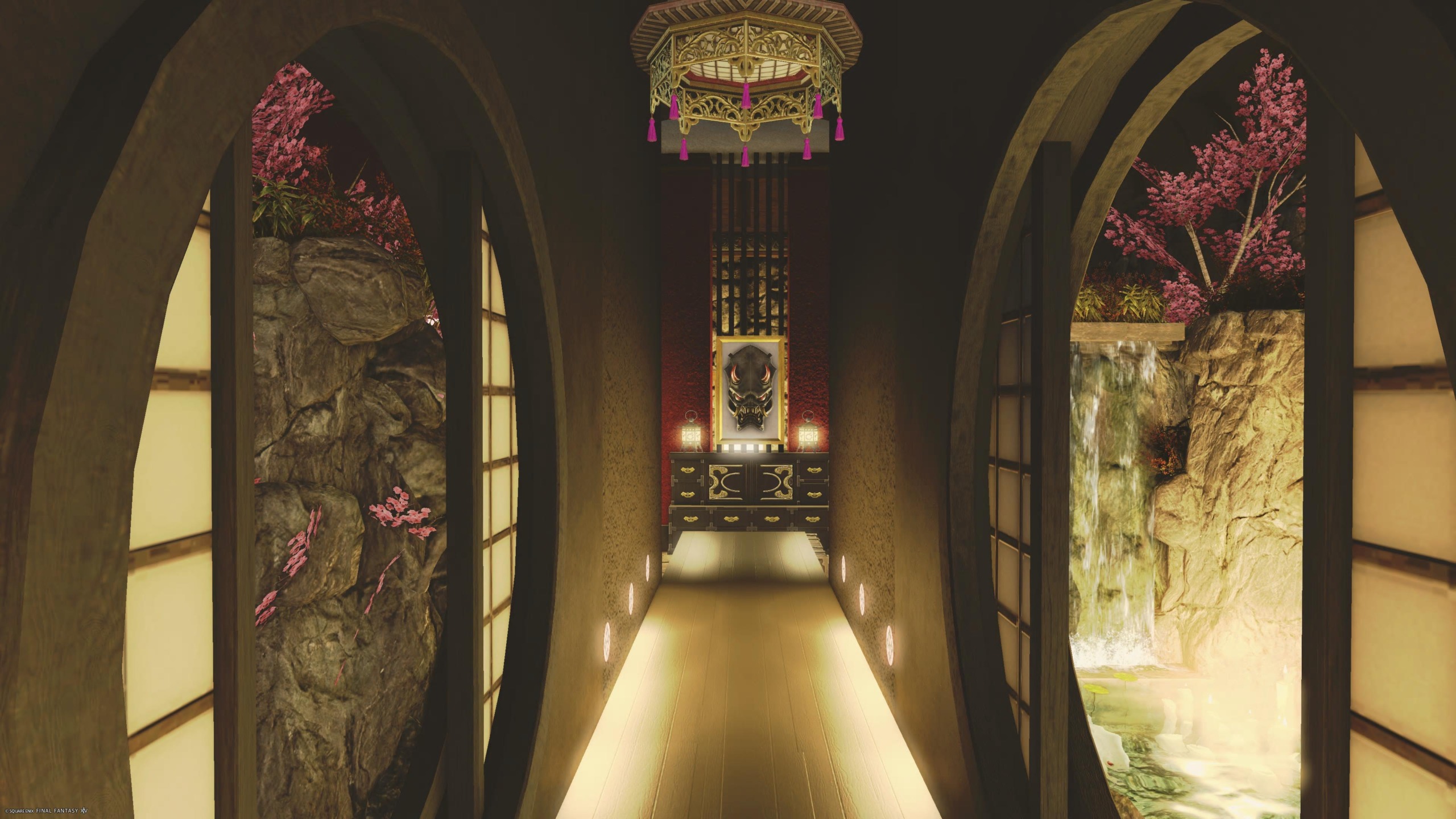 桜のある方の丸窓の中には、部屋入って左奥から入る事ができます