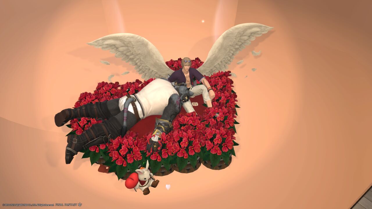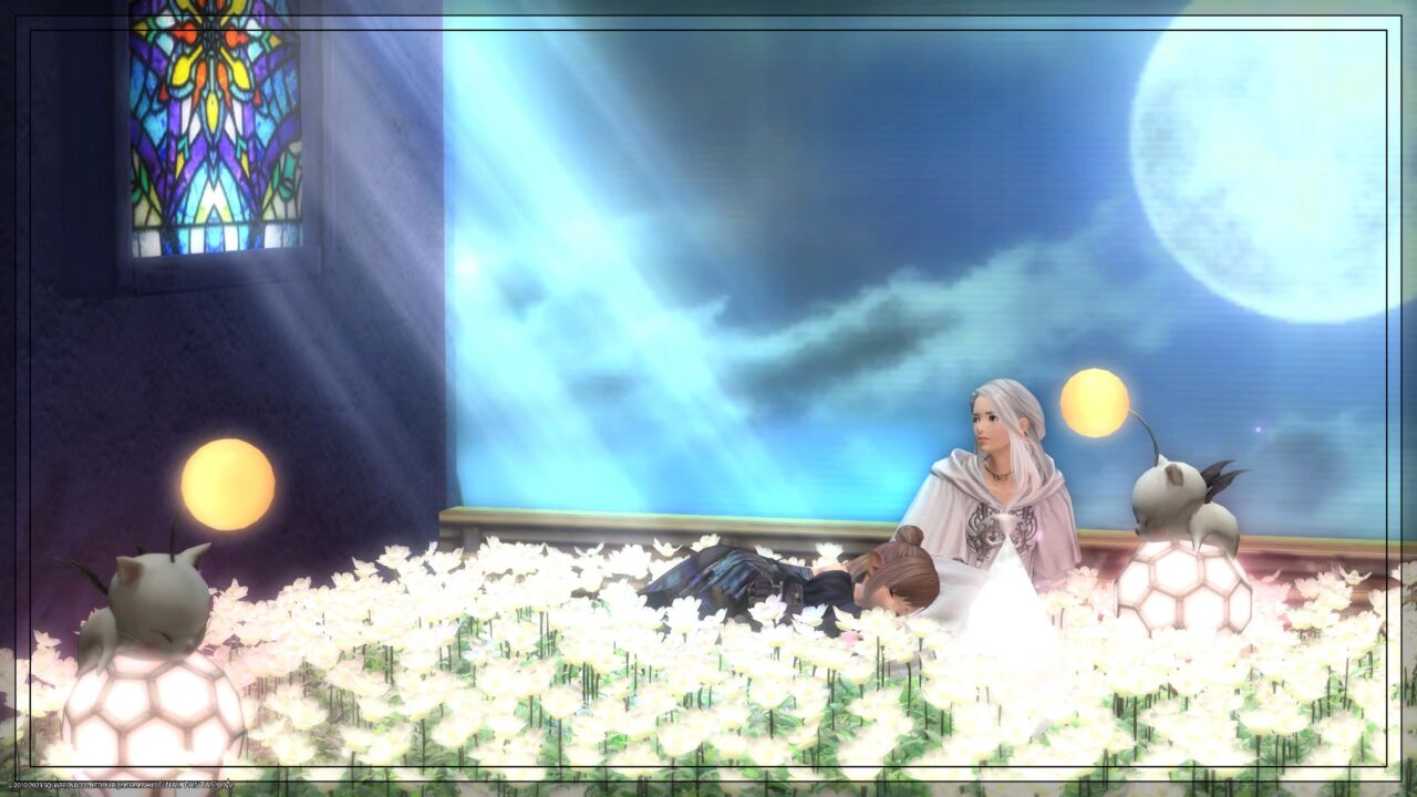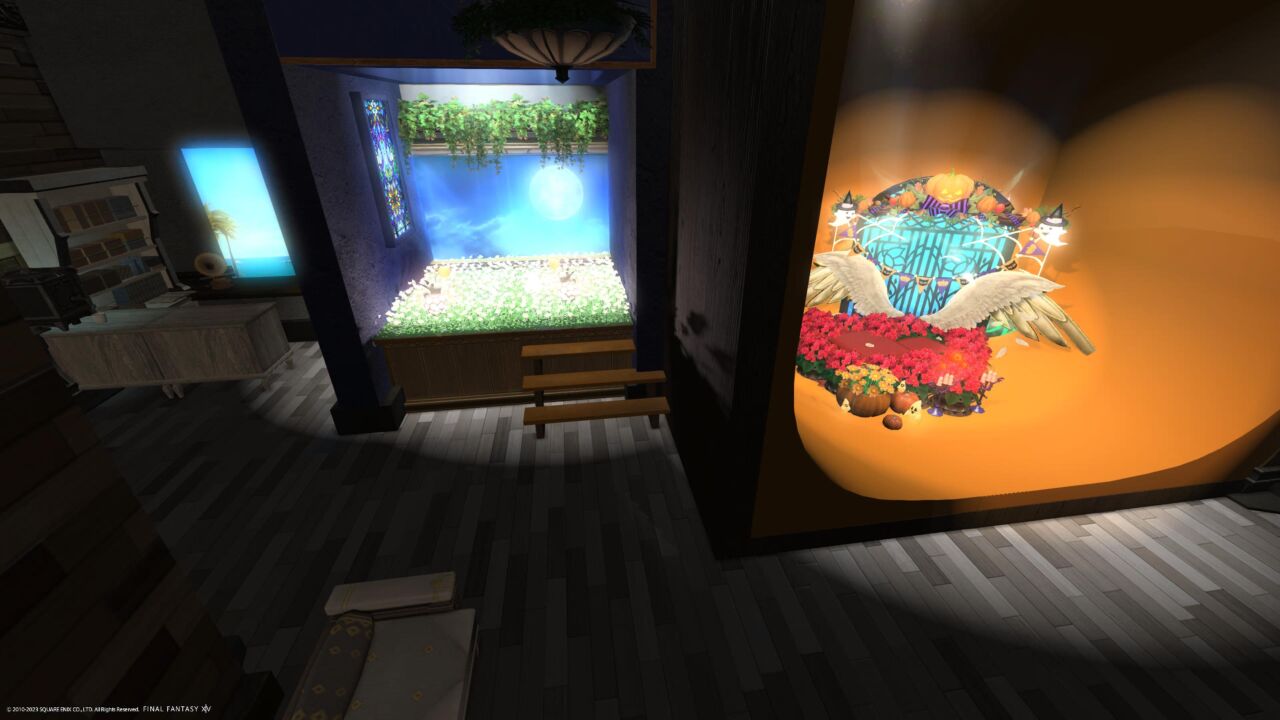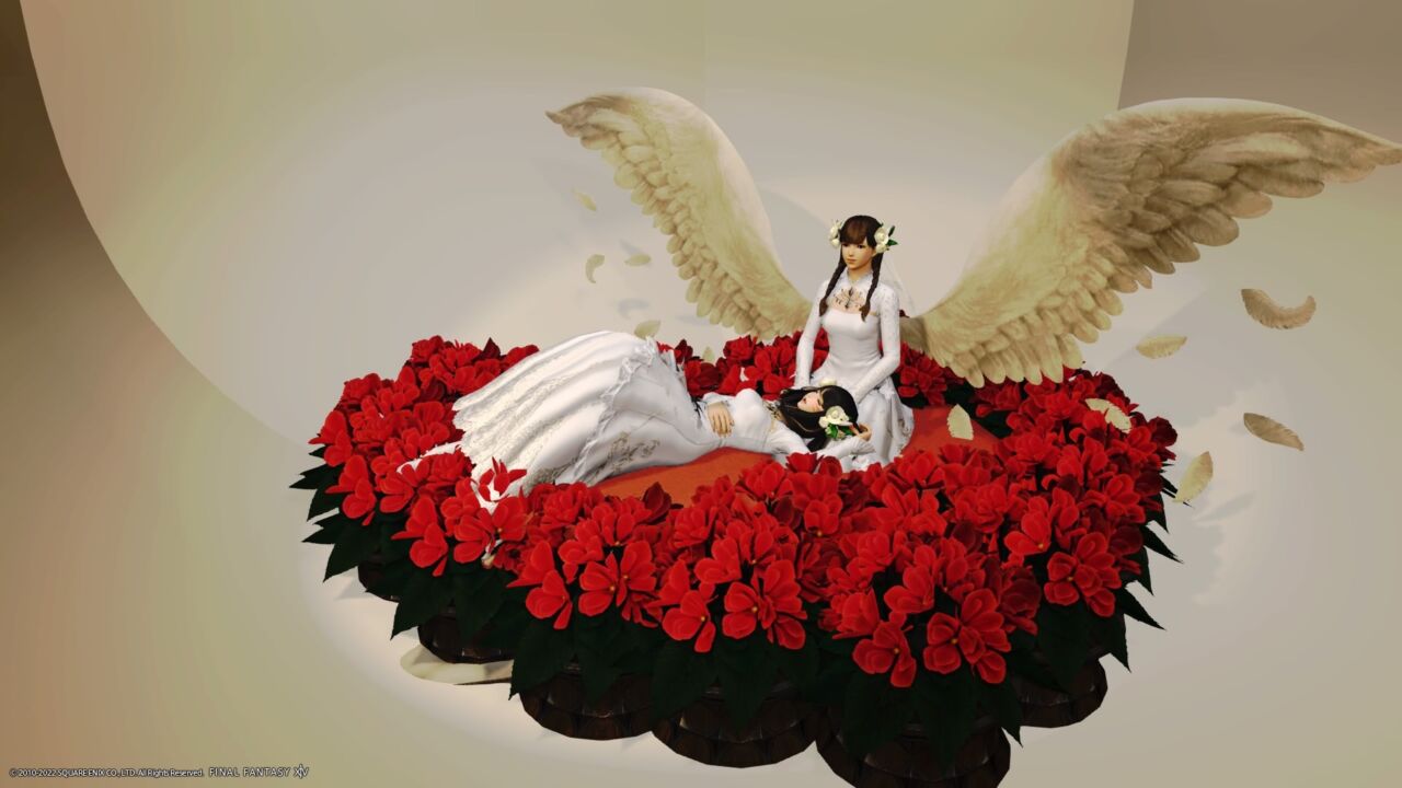 超画期的なシステムによりひざまくらが簡単にできるフォトスタジオです。左側に寝転んでいただき、右側のまくらさんが位置を『地面に座る』で調整すると簡単にひざまくらができます。どの種族にもある正座推奨ですが、慣れたらいろんなポーズをお試しください。エタバンフォトも撮れます。(ロスルガまくら高難度)