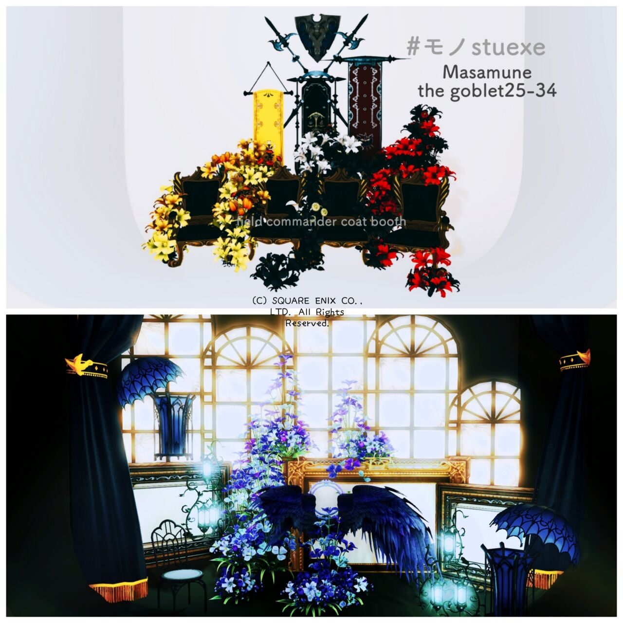 BOOTH①楽器と椅子に咲いた沢山のお花&ゴージャスな3つの椅子。