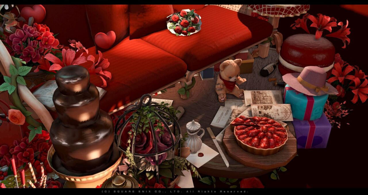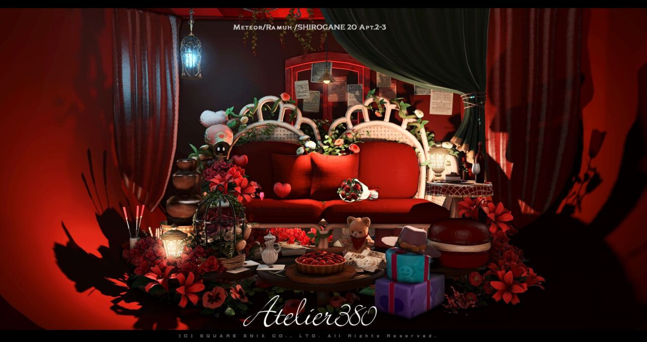 Atelier380-赤×チョコ- by さやお(||BR||)🌐Meteor / Ramuh(||BR||)📍シロガネ20区(||BR||)アパルトメント(拡張街)3号室(||BR||)1~3人向けの小さいブースです。(||BR||)照度0の為、明るさマニュアルを調整頂くとキレイに撮れます。(||BR||)VD終わっても撮れるように作ったのでお好きなミラプリで遊び(||BR||)#Atelier380(||BR||)https://studio-xiv.com/studio/31467/
