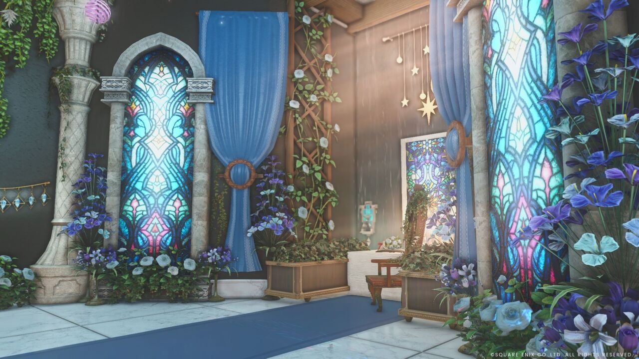 モノクロと青を基調に協会風スタジオです。23/6/20に改装致しました。朝、昼、夜と差し込む陽の光によって雰囲気が少し変わります。中央部分は居眠りエモートで横になることが出来ます。ゆったりお楽しみくださいませ。