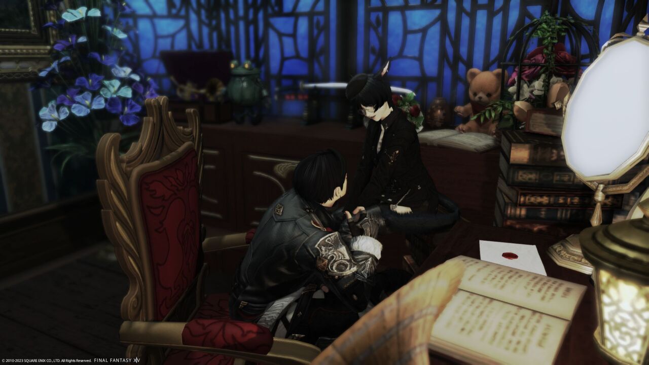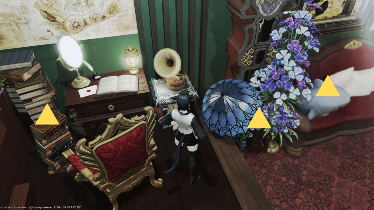 ※山積みの蔵書に座りたい場合、キャビネットの上に立ってから「座る」のエモートを使ってください。