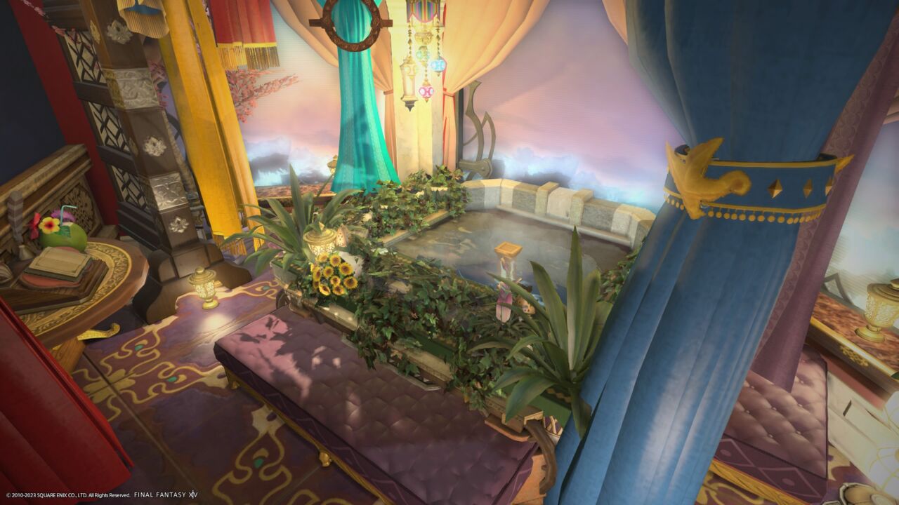 マジックアワー・スパ by Yahya(||BR||)🌐Elemental / Carbuncle(||BR||)📍エンピレアム21区(||BR||)アパルトメント4号室(||BR||)夜明けや夕方の、空の色が変わる時間帯を堪能するためのスパのあるスタジオです。(||BR||)くつろぎのミラプリでゆっくりと撮っていっていただけたら嬉しいです!(||BR||)#ややしき(||BR||)https://studio-xiv.com/studio/37081/