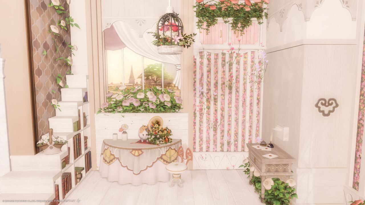 FC_blanc by shiro_tsukasa(||BR||)🌐Gaia / Ultima(||BR||)📍ラベンダーベッド5区12番(||BR||)白×ピンクのお花多めなお家です(||BR||)階段と本棚に少し座れます(||BR||)※ET昼推奨(||BR||)#FC_blanc(||BR||)https://studio-xiv.com/studio/40690/