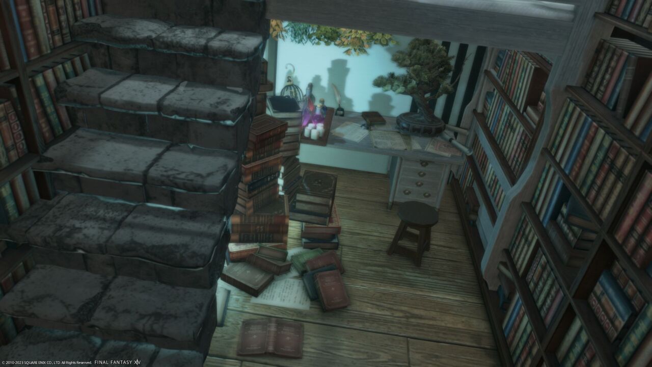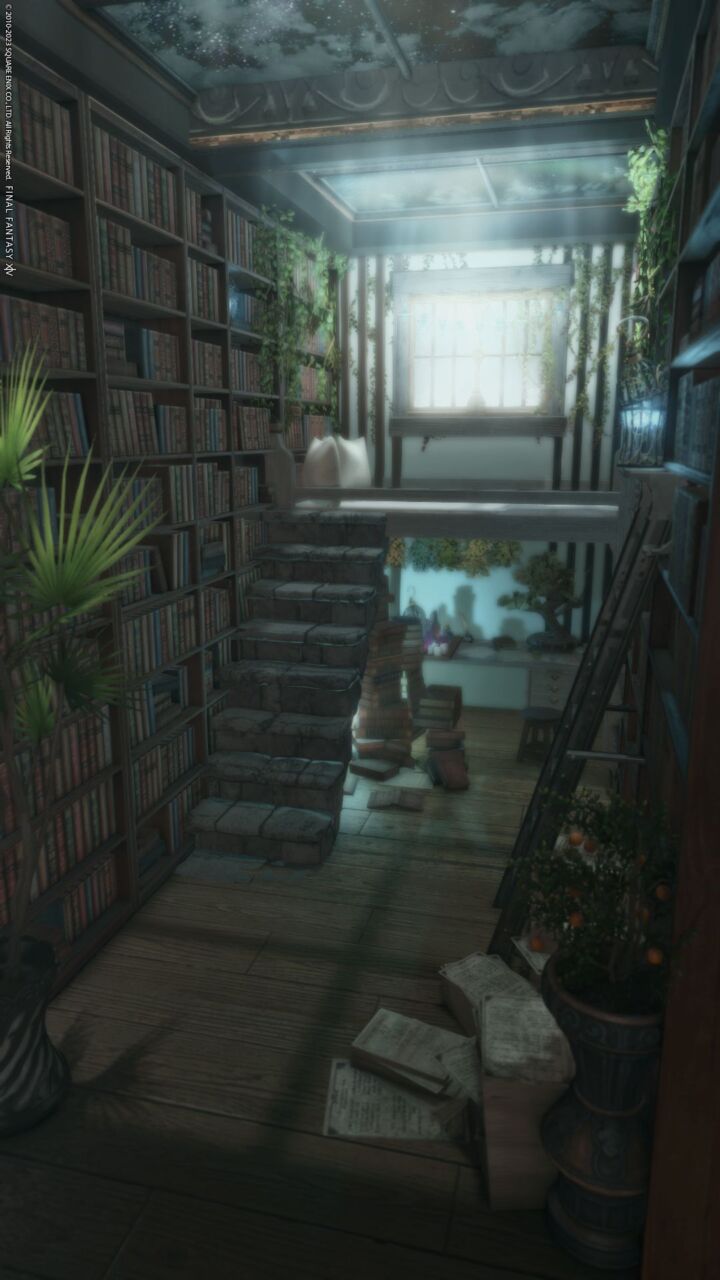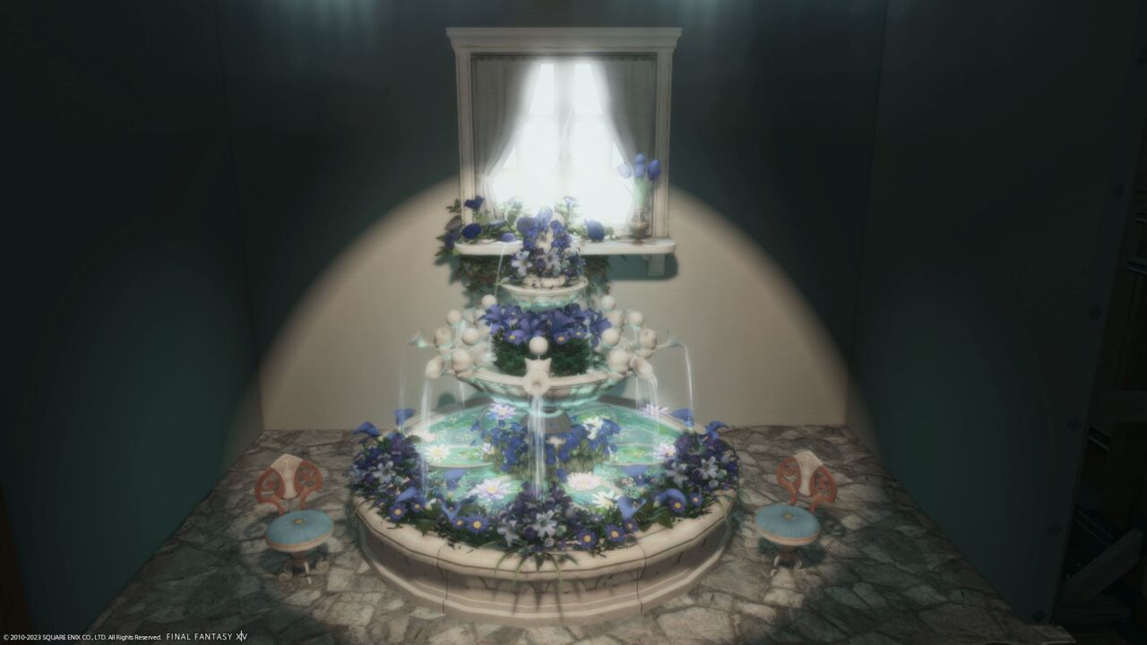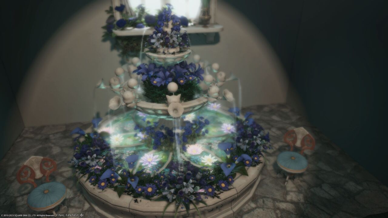 無題#3 by Mo(||BR||)🌐Elemental / Aegis(||BR||)📍ミスト・ヴィレッジ7区(||BR||)アパルトメント(拡張街)25号室(||BR||)青い花の噴水と学者のシェルター(||BR||)#Mo_xivhousing(||BR||)https://studio-xiv.com/studio/42018/
