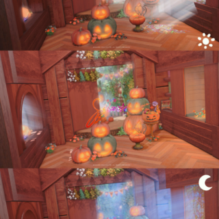 朝〜昼は明るい日差し、夜は青色の光が差し込みます。