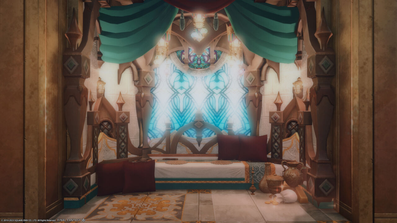 Penari by Newt(||BR||)🌐Elemental / Typhon(||BR||)📍ラベンダーベッド16区(||BR||)アパルトメント4号室(||BR||)ラザハン家具とステンドクリスタルを組み合わせたお部屋です。(||BR||)#にーくんハウス(||BR||)https://studio-xiv.com/studio/47156/
