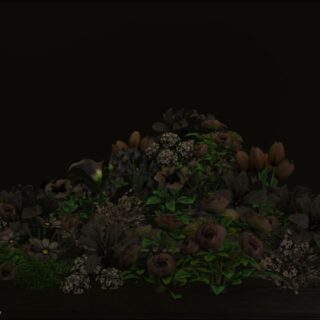 地下にもブース複数。黒い花のブースでは1人寝転がれます。位置調整してありますので埋まらない膝枕ができます。