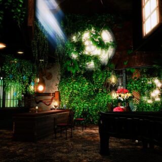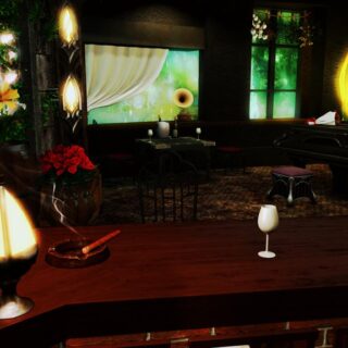雨音の響く物憂げな雰囲気の酒場風スタジオ作りました。店主やお客さん風のSS撮れるかと思います。照度0設定の為ライトを工夫して撮ってみて下さい!常時開放していますのでご自由にお使い下さい。