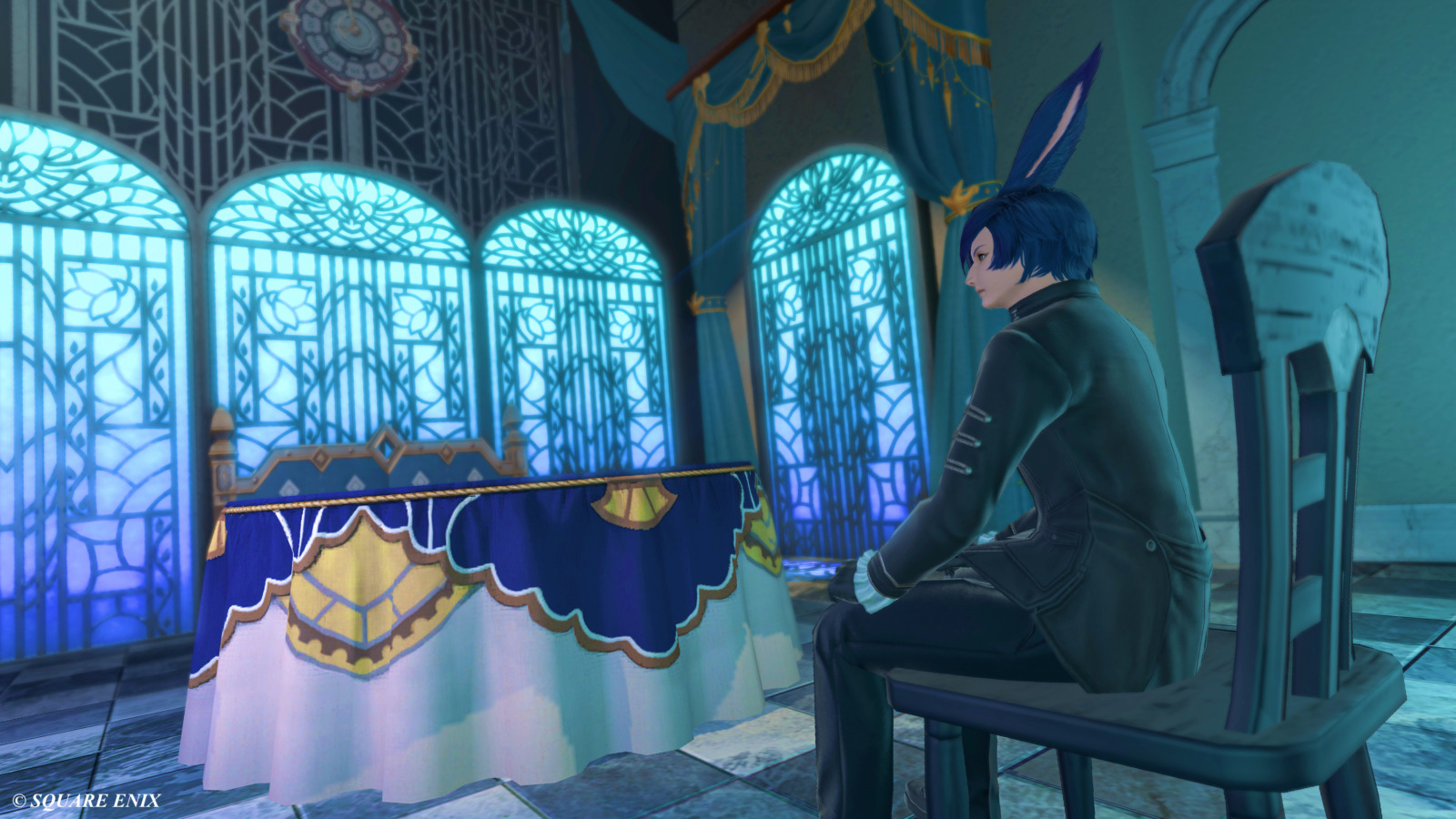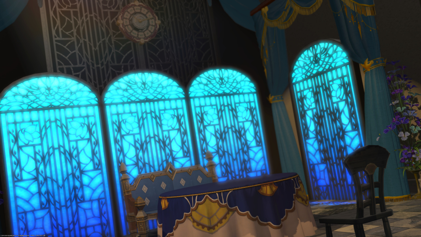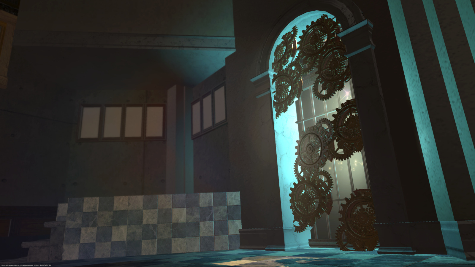 ペルソナ3風スタジオ by ルークス(||BR||)🌐Elemental / Aegis(||BR||)📍エンピレアム20区(||BR||)アパルトメント(拡張街)4号室(||BR||)ペルソナ3のベルベットルームとタルタロスの内部風に作りました。(||BR||)グルポでライトを設置して色を変えると雰囲気増します。(||BR||)是非試してみて下さい。(||BR||)#るーくす小部屋(||BR||)https://studio-xiv.com/studio/53436/