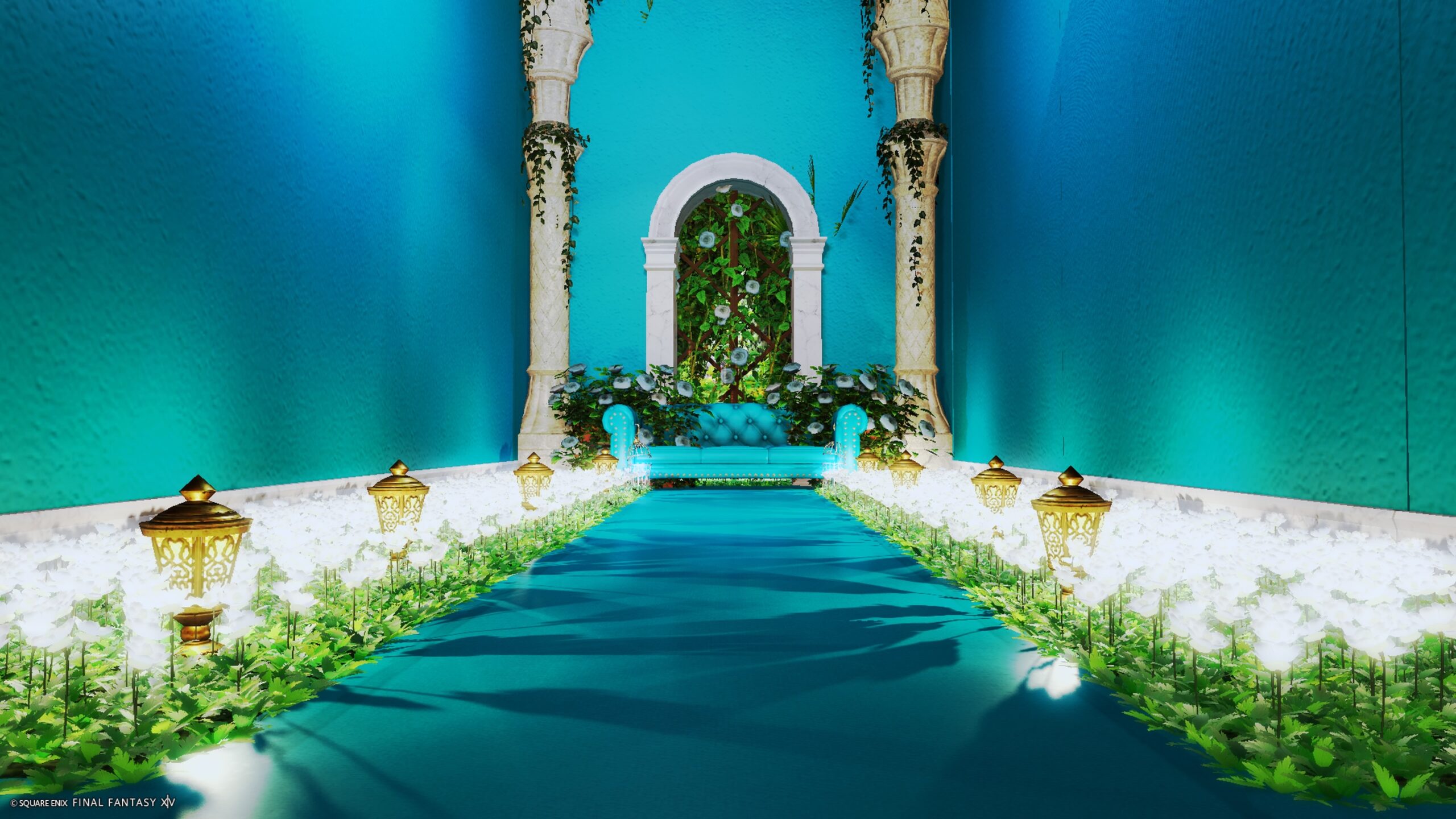 ゆずすたじお by ゆずひ(||BR||)🌐Meteor / Valefor(||BR||)📍エンピレアム30区(||BR||)アパルトメント(拡張街)4号室(||BR||)ターコイズカラーのお部屋!(||BR||)グルポで明るさ、フィルター調整お願いします。(||BR||)(SSは色ペン1を使ってます)(||BR||) 2026年2月18日 改装しました!(||BR||)#ゆずすたじお(||BR||)https://studio-xiv.com/studio/55553/