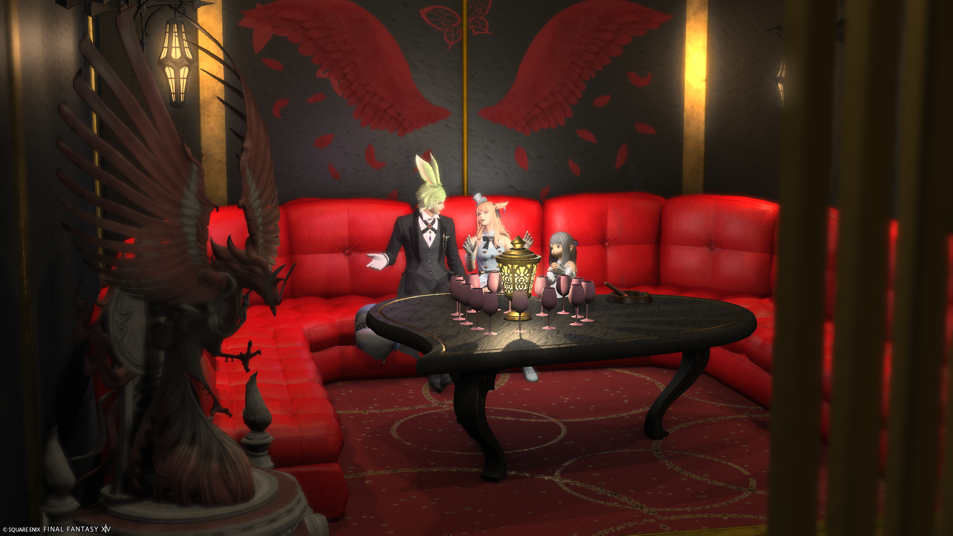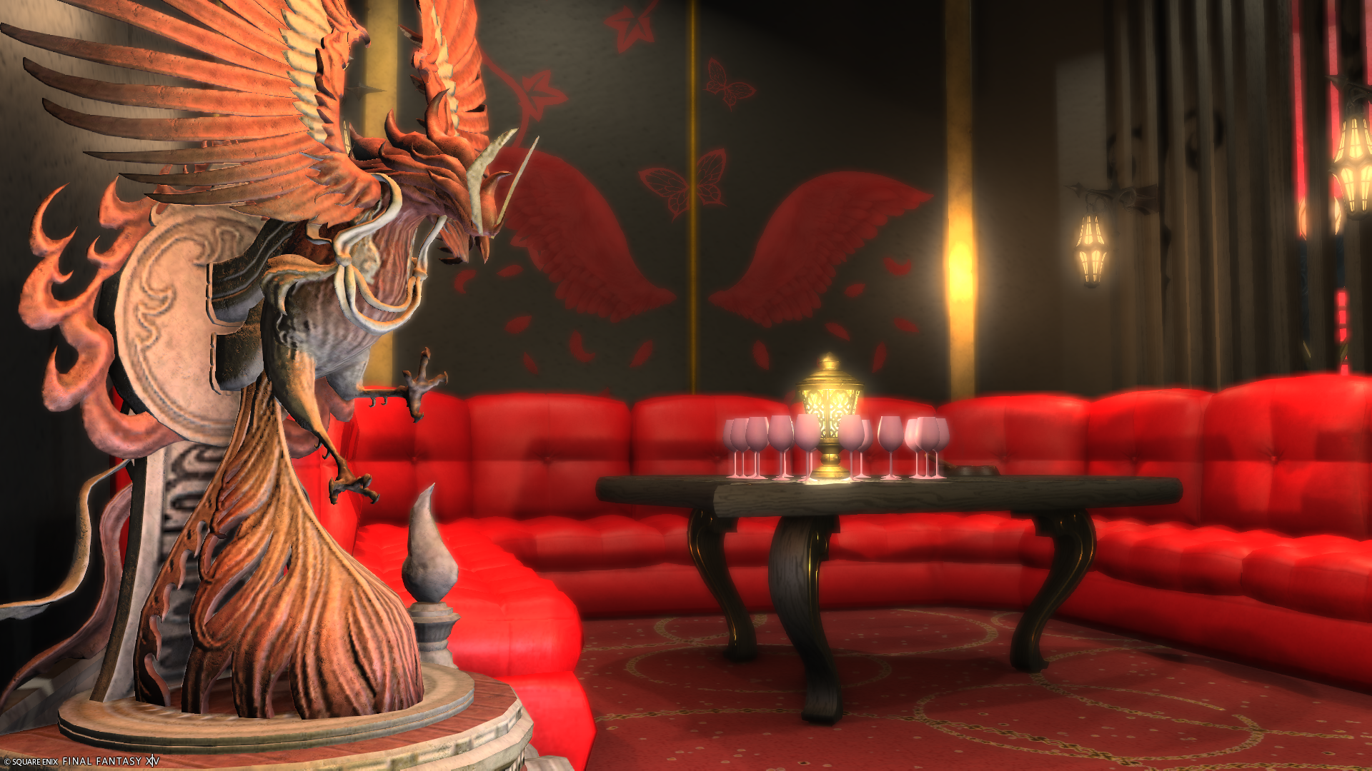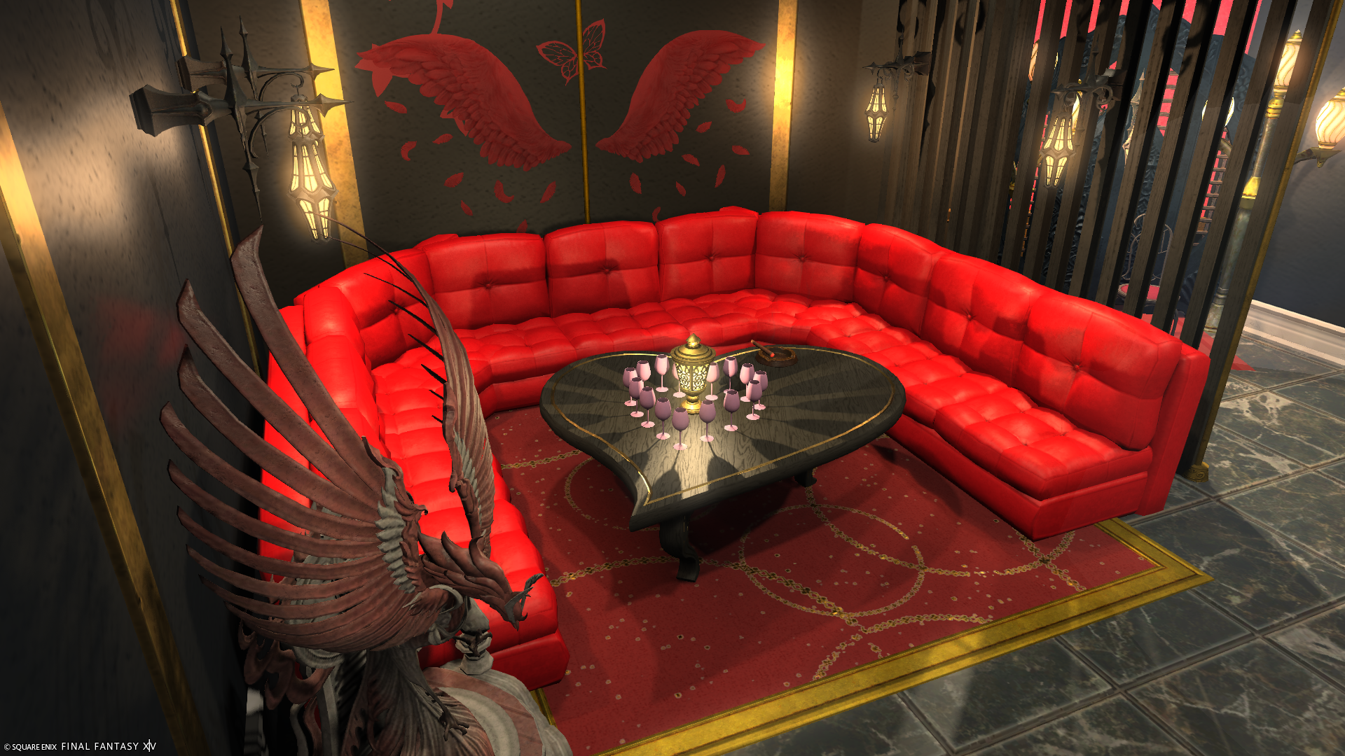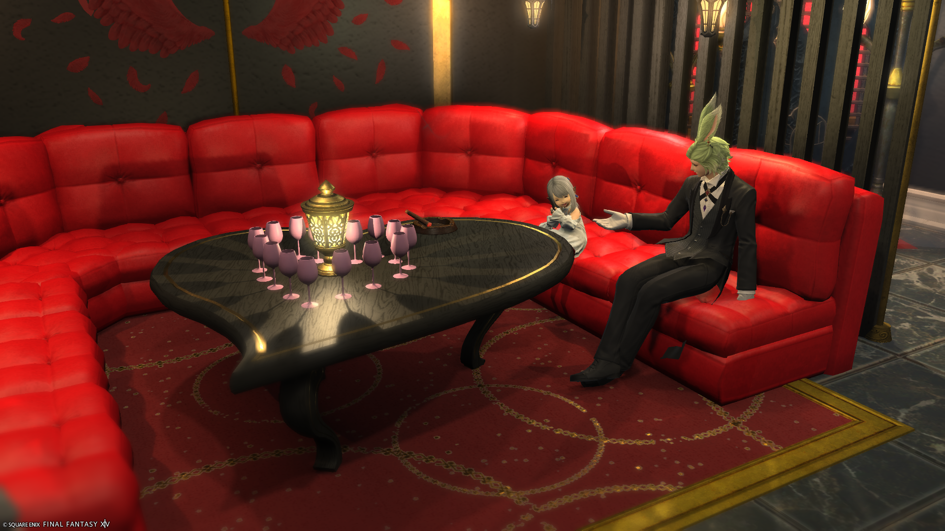 ホストクラブ風〜紅Bird〜 by こった(||BR||)🌐Mana / Chocobo(||BR||)📍ミスト・ヴィレッジ13区(||BR||)アパルトメント36号室(||BR||)ホストクラブ風の内装です。(||BR||)楽しくお酒を飲んだり、男女が楽しむ空間になっています。(||BR||)ぜひ、自由なミラプリで、好きに撮影してください。(||BR||)#こったんちff14(||BR||)https://studio-xiv.com/studio/61711/