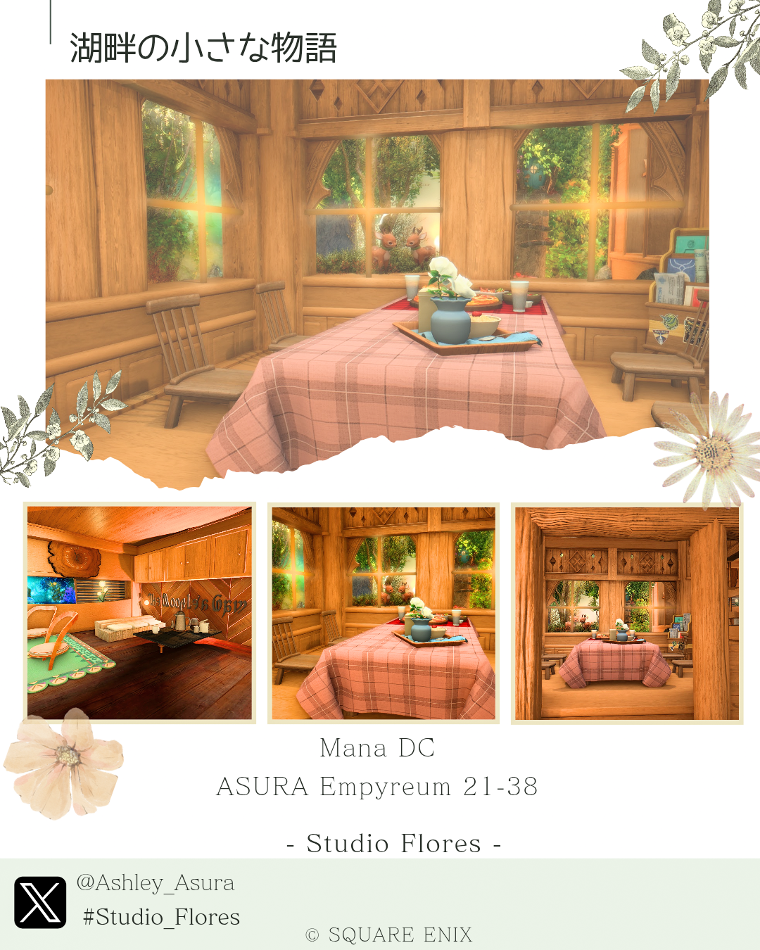 湖畔の小さな物語 by あしゅ(||BR||)🌐Mana / Asura(||BR||)📍エンピレアム21区38番(||BR||)湖畔が見渡せる小さなララフェルカフェを作ってみました🌿(||BR||)#Studio_Flores(||BR||)https://studio-xiv.com/studio/62288/