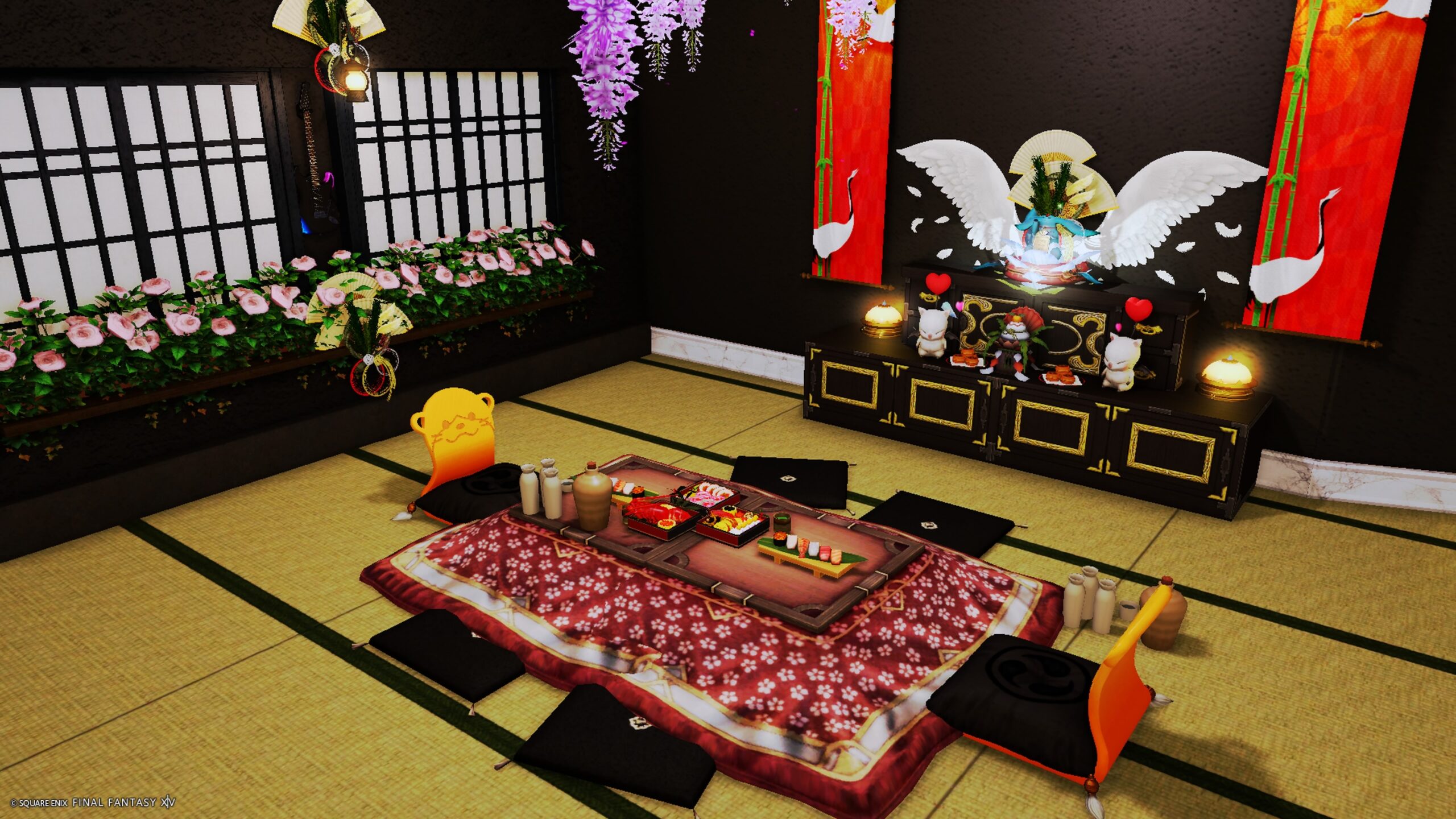 ゆずのおうち by ゆずひ(||BR||)🌐Meteor / Valefor(||BR||)📍エンピレアム30区44番(||BR||)改装しました!(||BR||)1階はお正月!(||BR||)地下はお花と緑(座れます。)(||BR||)明るさはグルポで調整してください!(||BR||)#ゆずすたじお(||BR||)https://studio-xiv.com/studio/63084/