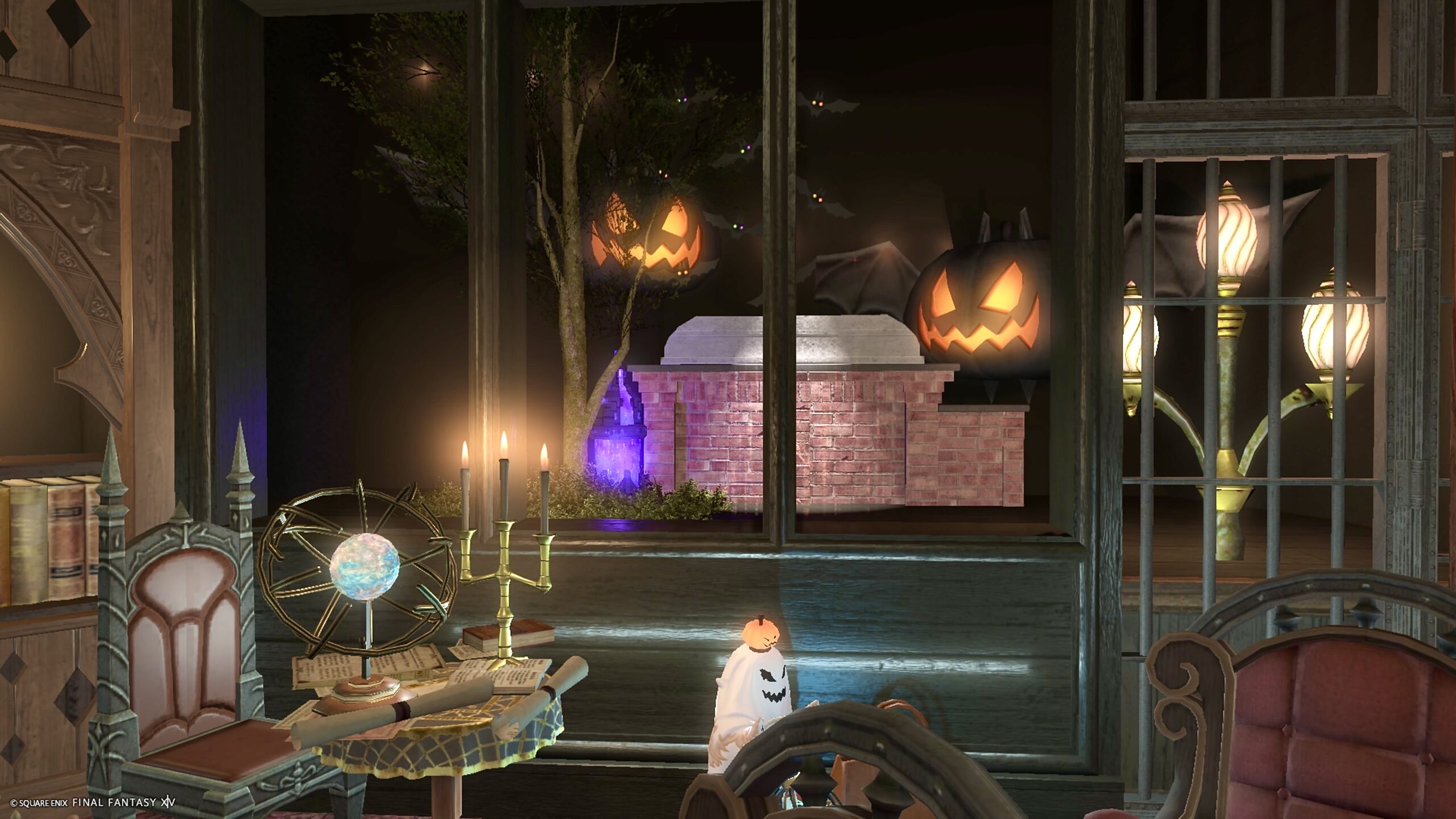 パンプキンキャットタワーをはじめ、S地下にハロウィンブースを作ってみました🎃2025年ver.に少しリニューアル!ファットキャットちゃんがパーティー仕様となり、最奥にはT〇Lのホーンテッド的なアトラクションブースがあります👻🏚椅子の行き先には何があるかな??