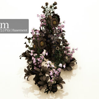 A black and pink floral arrangement.
