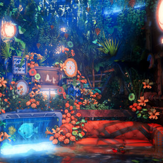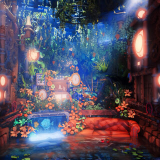 草木に包まれ荒廃した、それでいてどこか幻想てき世界をイメージしたスタジオです