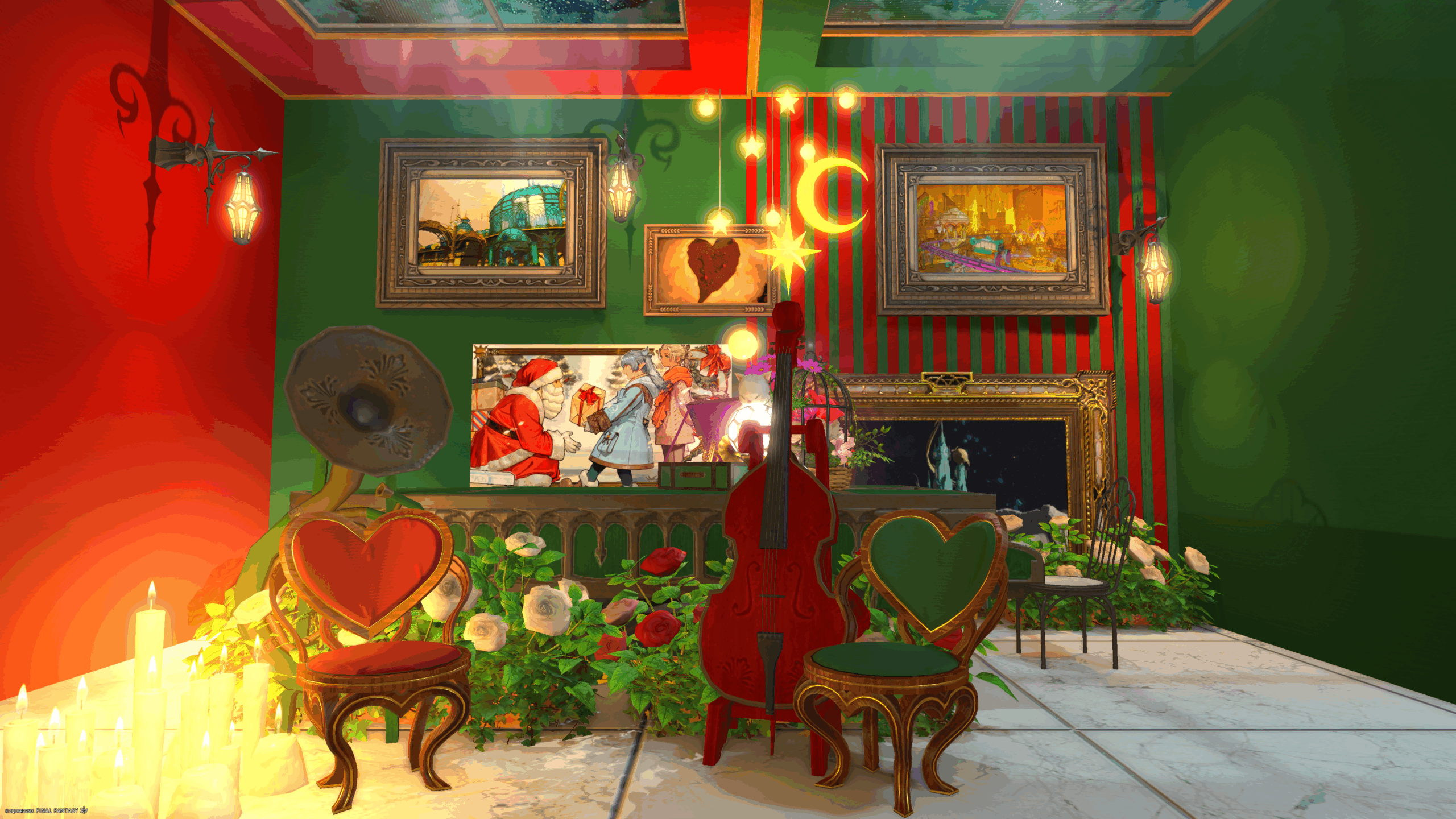 Azusa_studio【薔薇】 by 猫塚あずさ(||BR||)🌐Meteor / Belias(||BR||)📍エンピレアム12区(||BR||)アパルトメント4号室(||BR||)クリスマスカラーに変更いたしました!(||BR||)ピアノの上は、座ったり、寝れます。(||BR||)※ララで確認済み。(||BR||)※今後微調整、ブース改装する場合あり。(||BR||)#Azusa_studio(||BR||)https://studio-xiv.com/studio/71852/