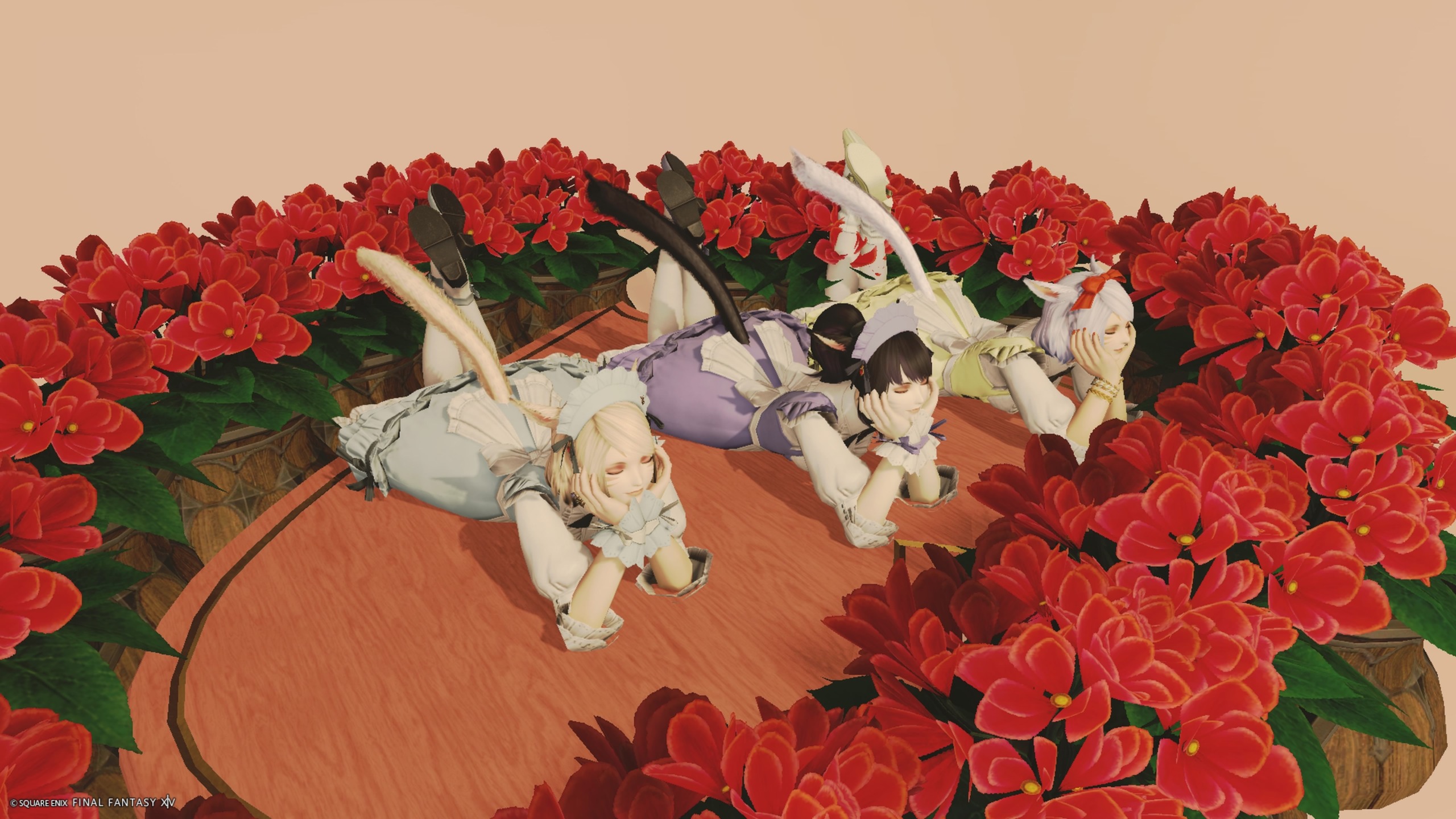 壁際設置のハートは全て居眠り判定があり、花飾りがある箇所は最大で3名横並びに眠る事ができます。