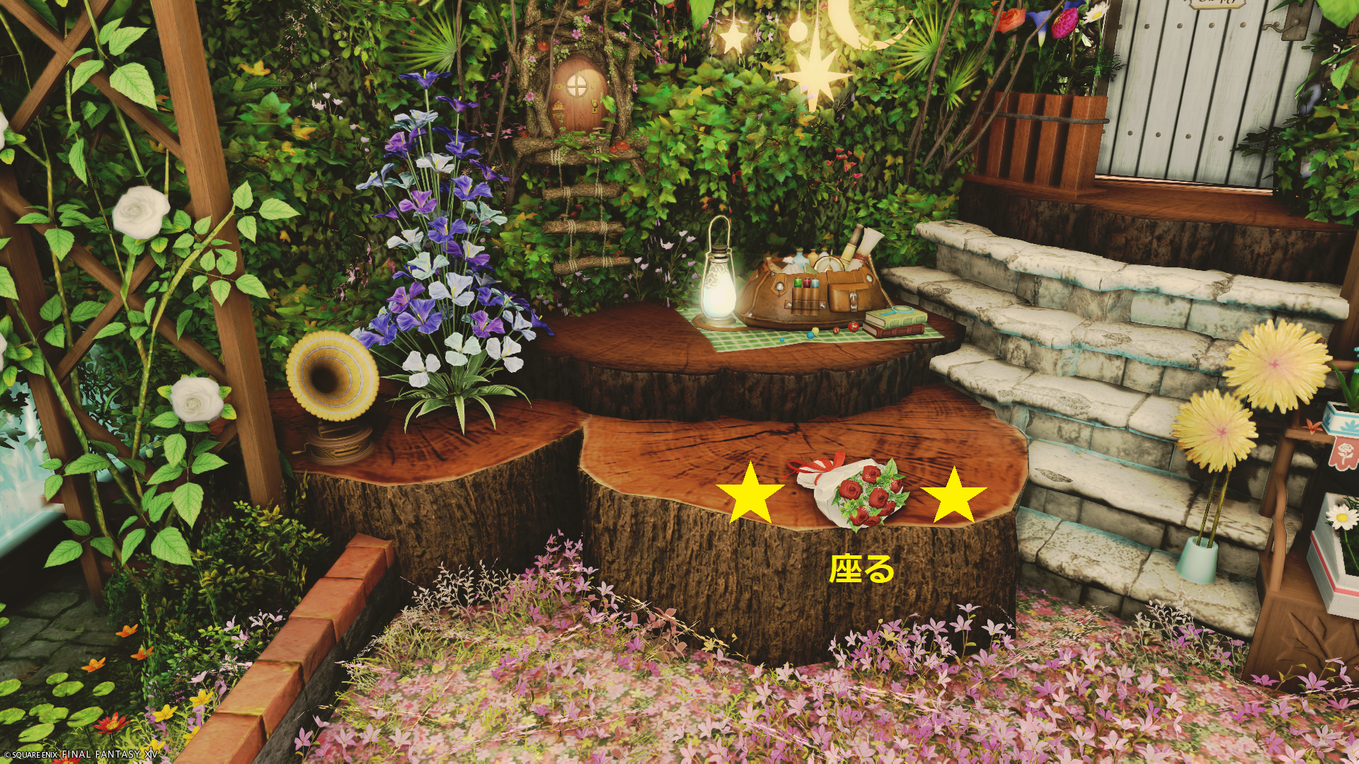 森のお茶会 by くう(||BR||)🌐Gaia / Bahamut(||BR||)📍ミスト・ヴィレッジ23区(||BR||)アパルトメント44号室(||BR||)森の中でお茶会しましょう!(||BR||)照明4 タグ #kuuki_std(||BR||)●=居眠りする ★=座る(||BR||)※住所の記載はしないでください(||BR||)※放置、MOD、過度な露出の服ご遠慮ください(||BR||)#kuuki_std(||BR||)https://studio-xiv.com/studio/73098/