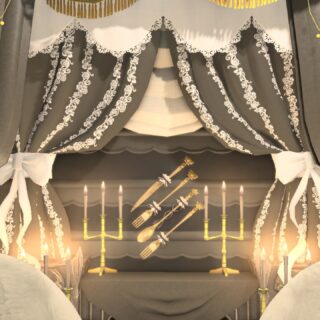 ゴシック調というより、ゴスロリをイメージしたブースです。台座に3人座れます(多分)。