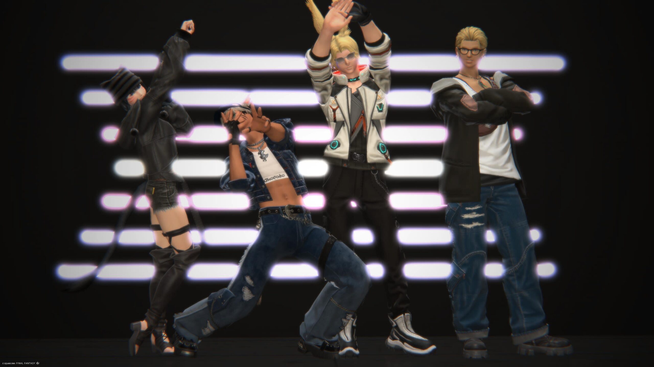 写真3枚目:利用者様が4人でグルーヴ感最高で撮ってくださいました!仲の良さが伝わってくる楽しい写真…こういう風に使ってもらえるの、とてもうれしいです!
