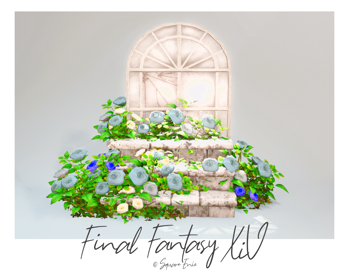 青のお花だけの接写用ブースは真ん中に椅子があるので腰かけたりララチャンは足場にしての撮影が可能です