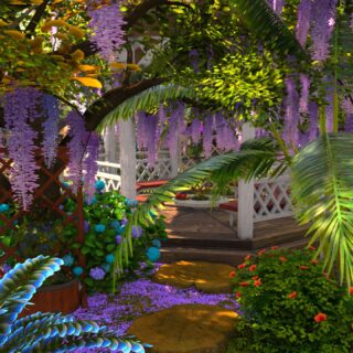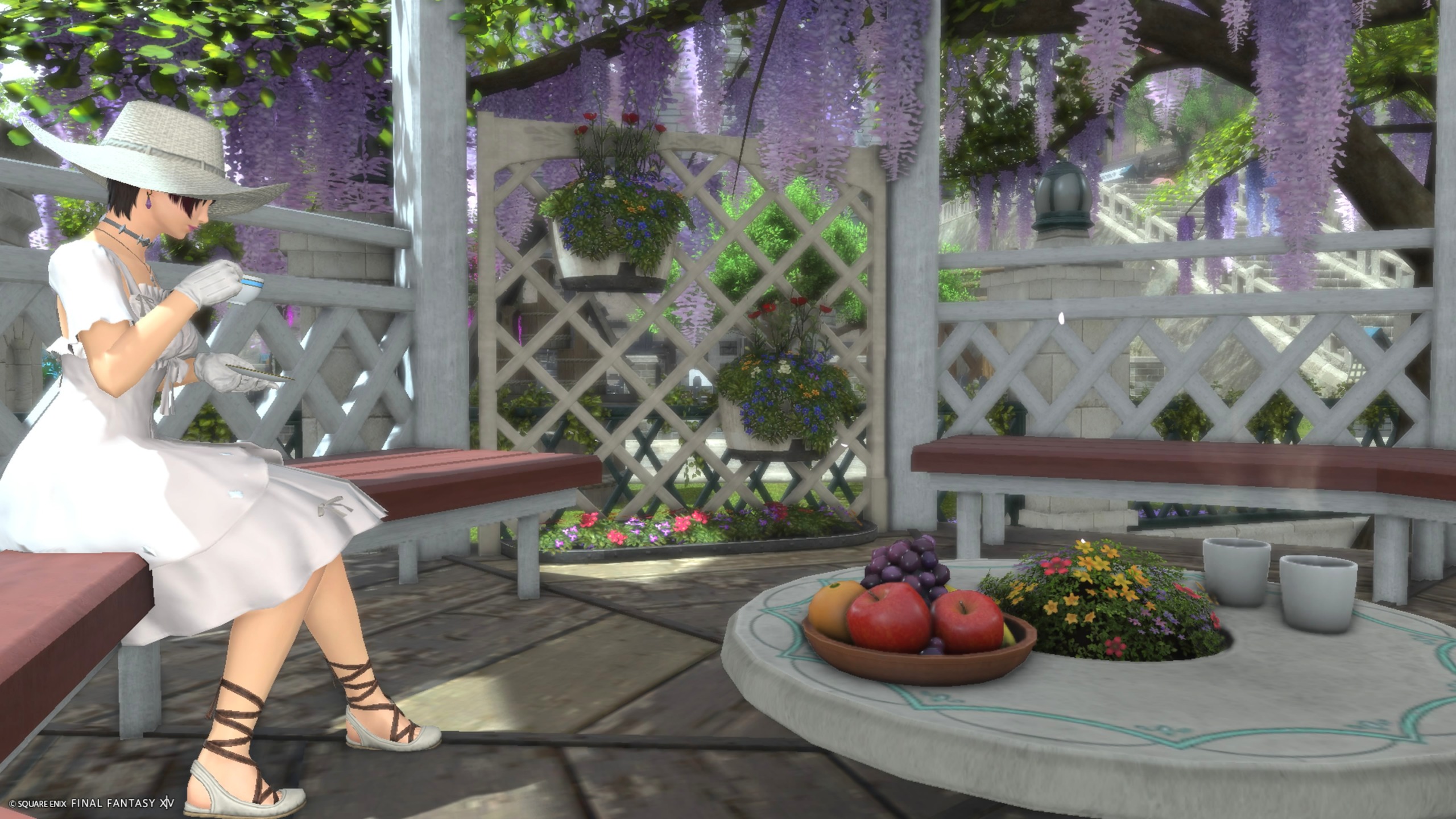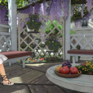 外のガーデニングは、マダムジーナの庭園を再現しています。