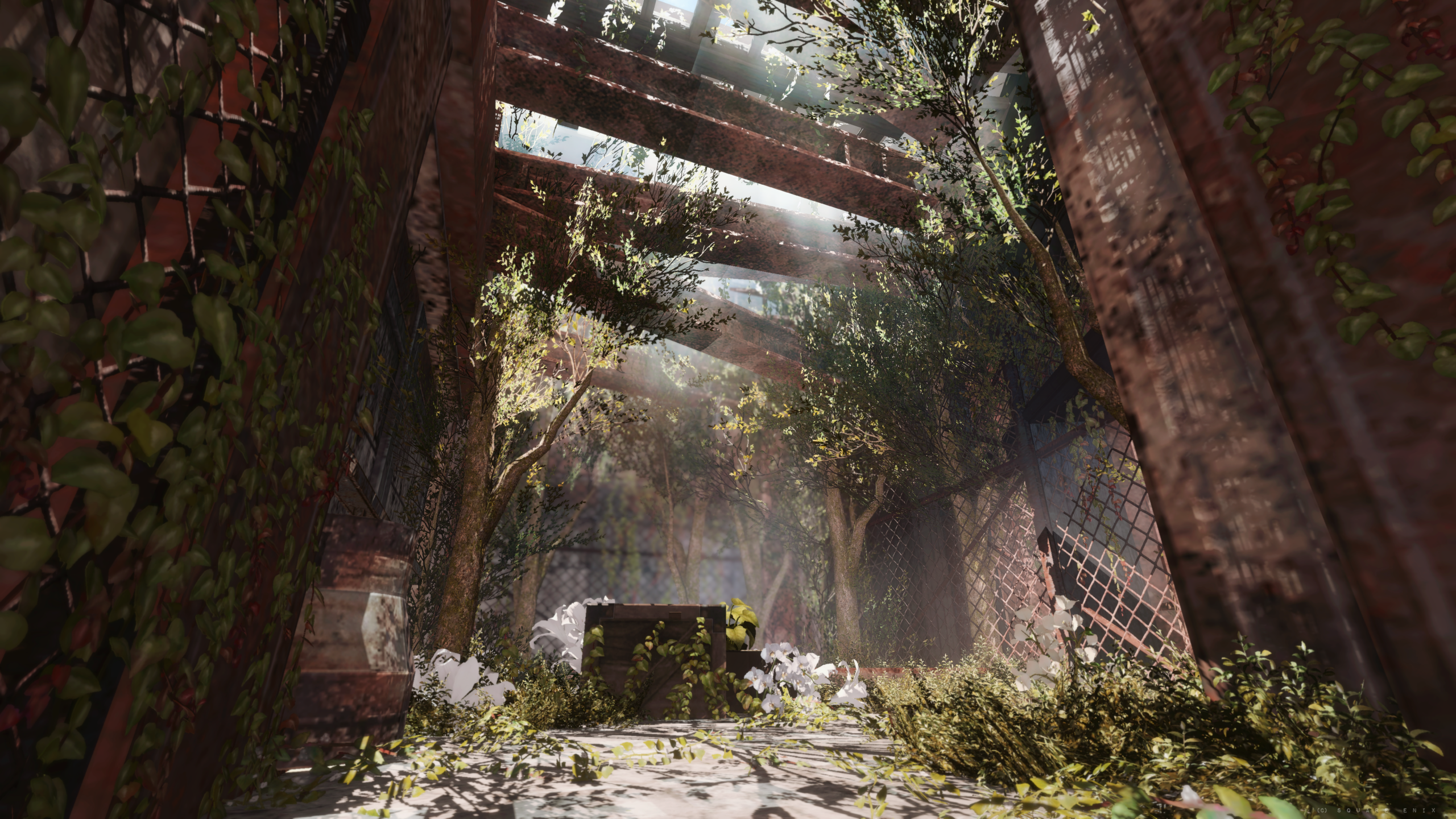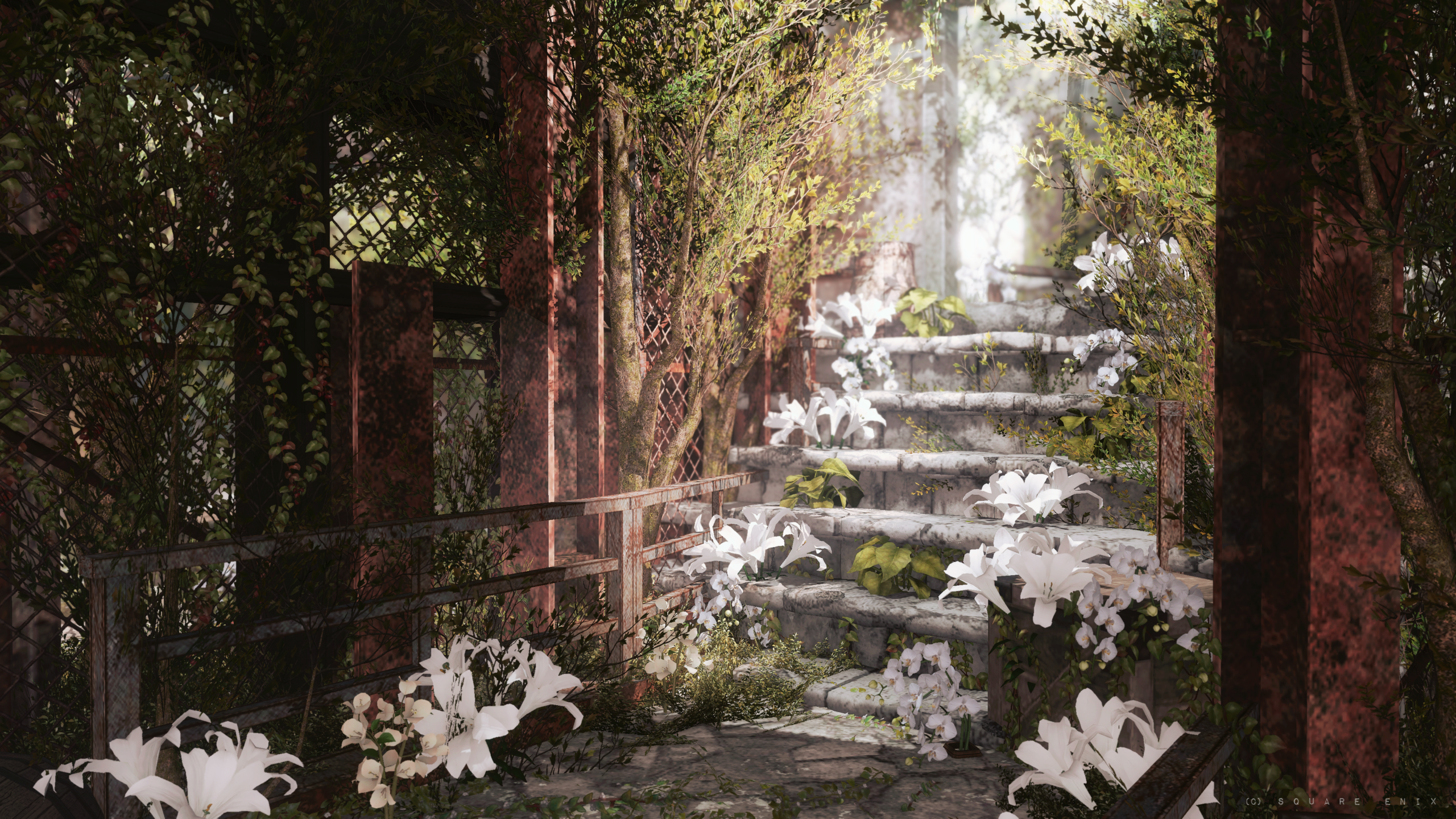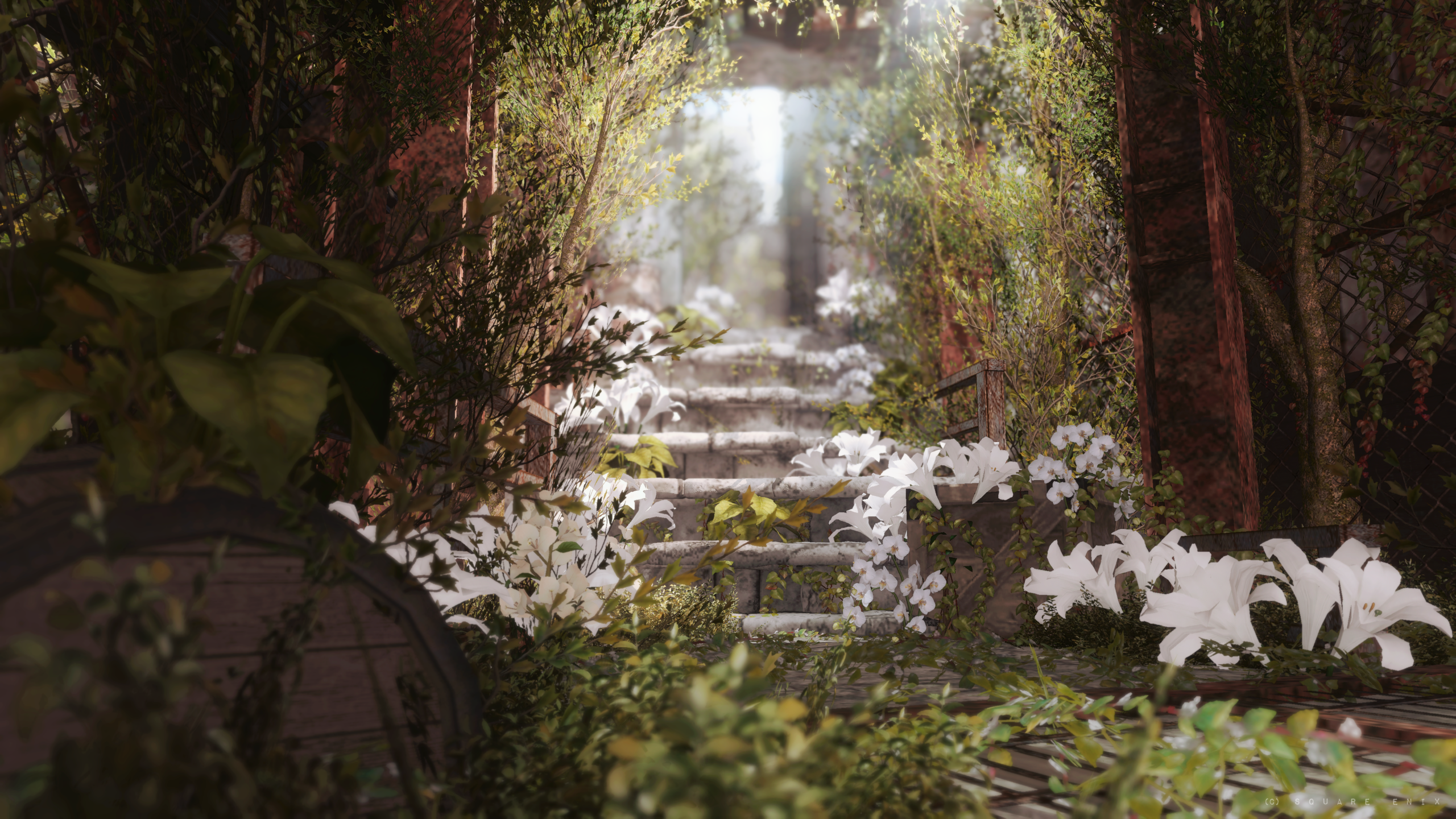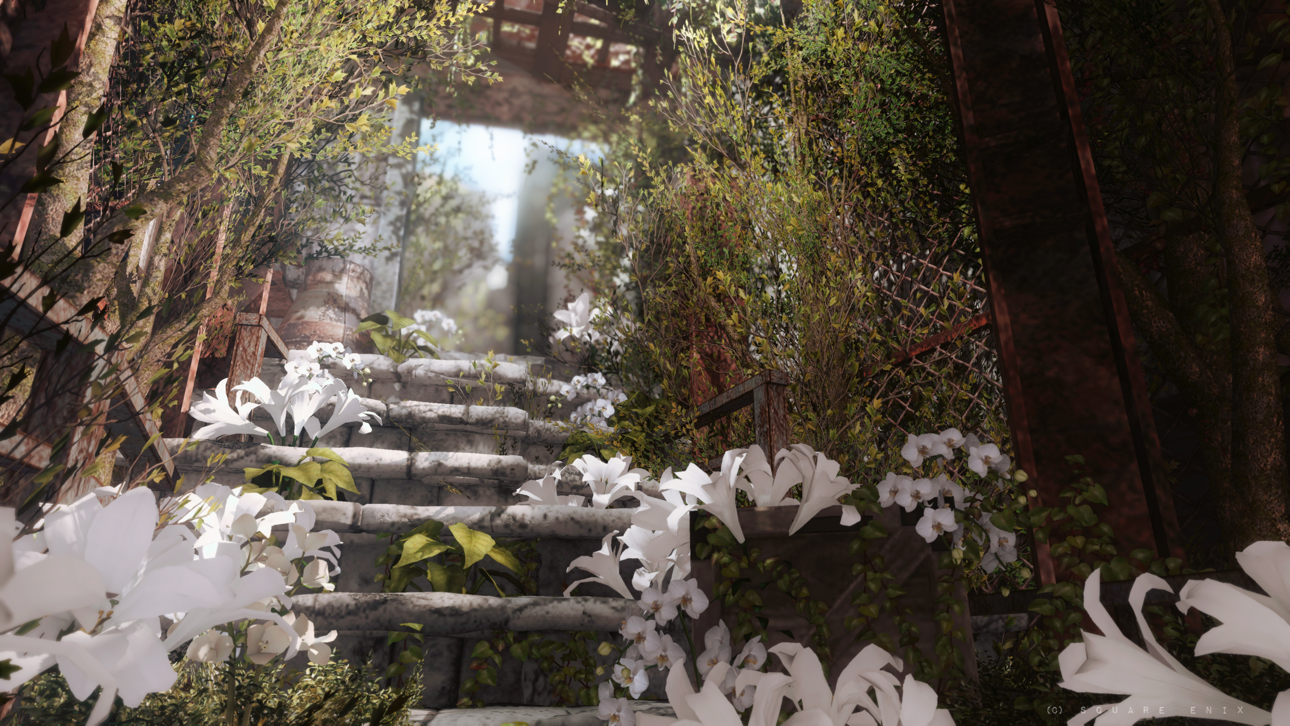 ✦座れる所 正面の階段&木箱 左通路奥の木箱