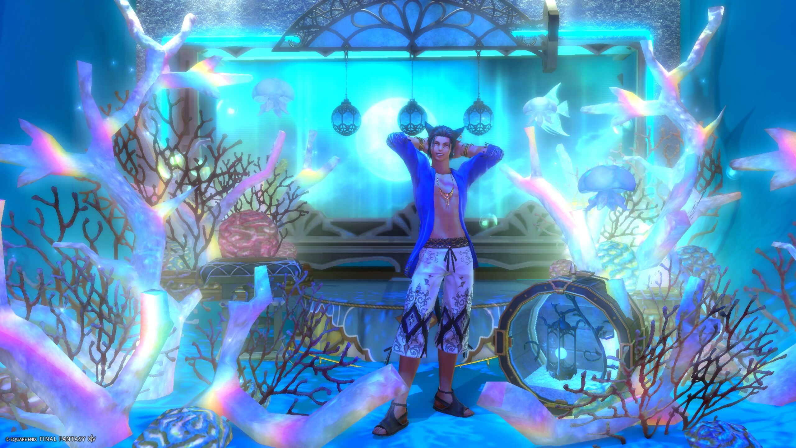 地下のリゾートバーはララフェルステップも完備!どなたでもかっこよくシェイカーを振れます。