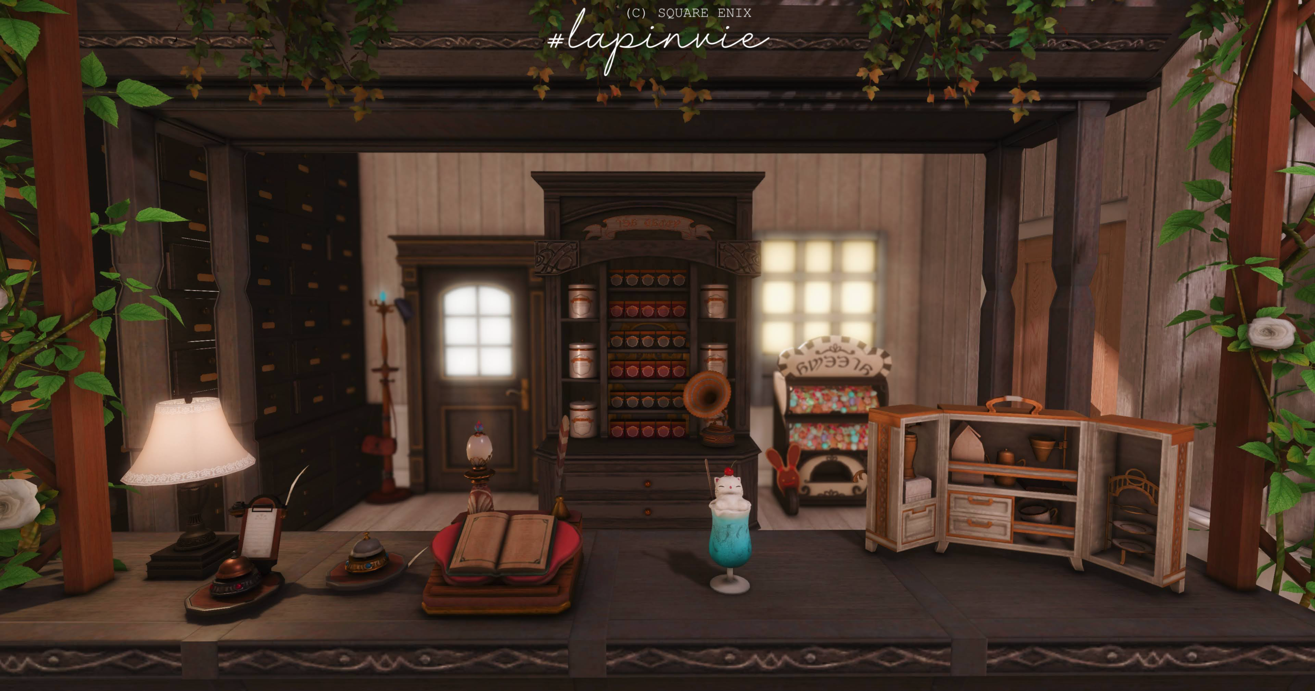 花と森の憩いの空間。緑と光が差し込むカフェスペースと、クラシカルなカウンタースペースがあります。