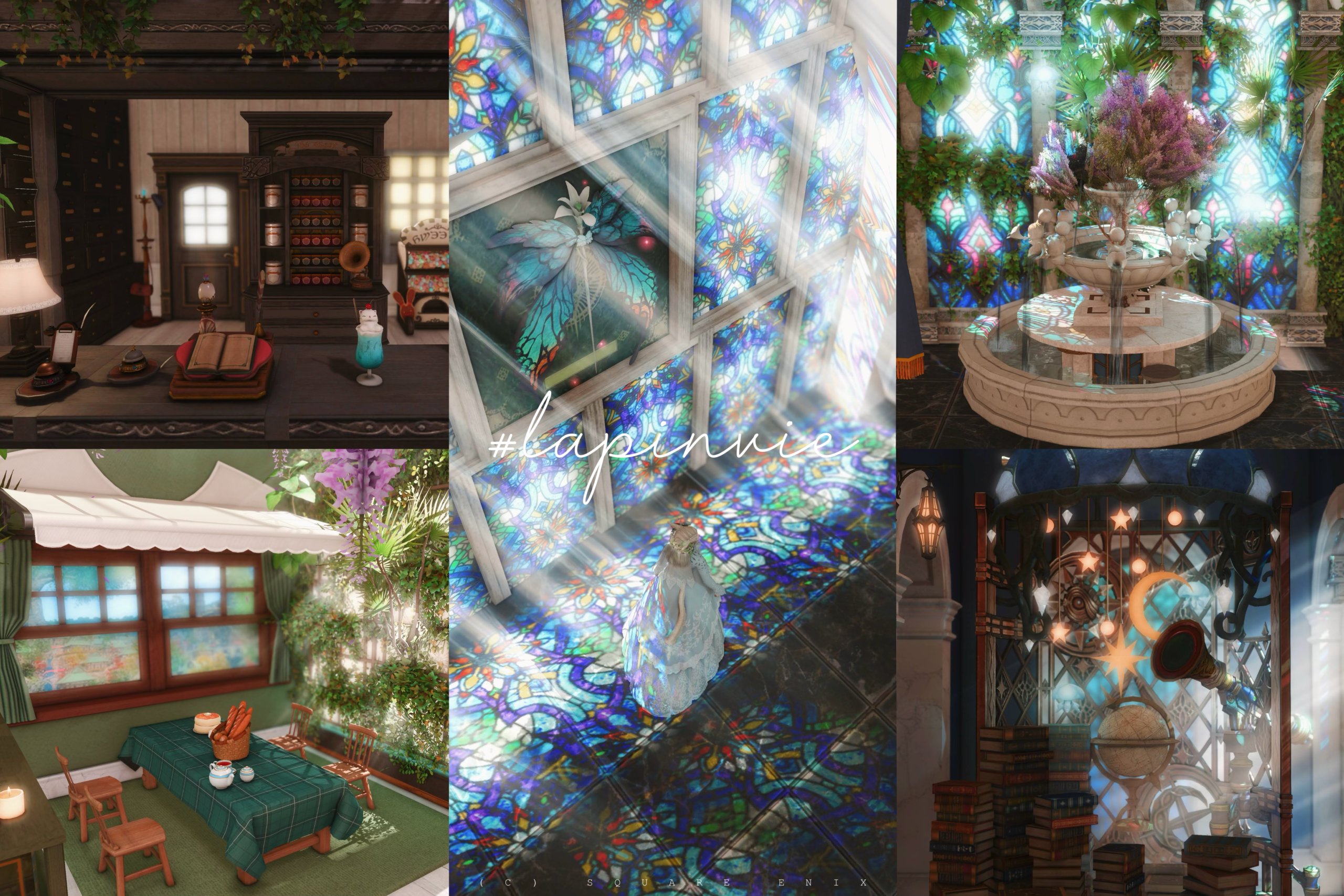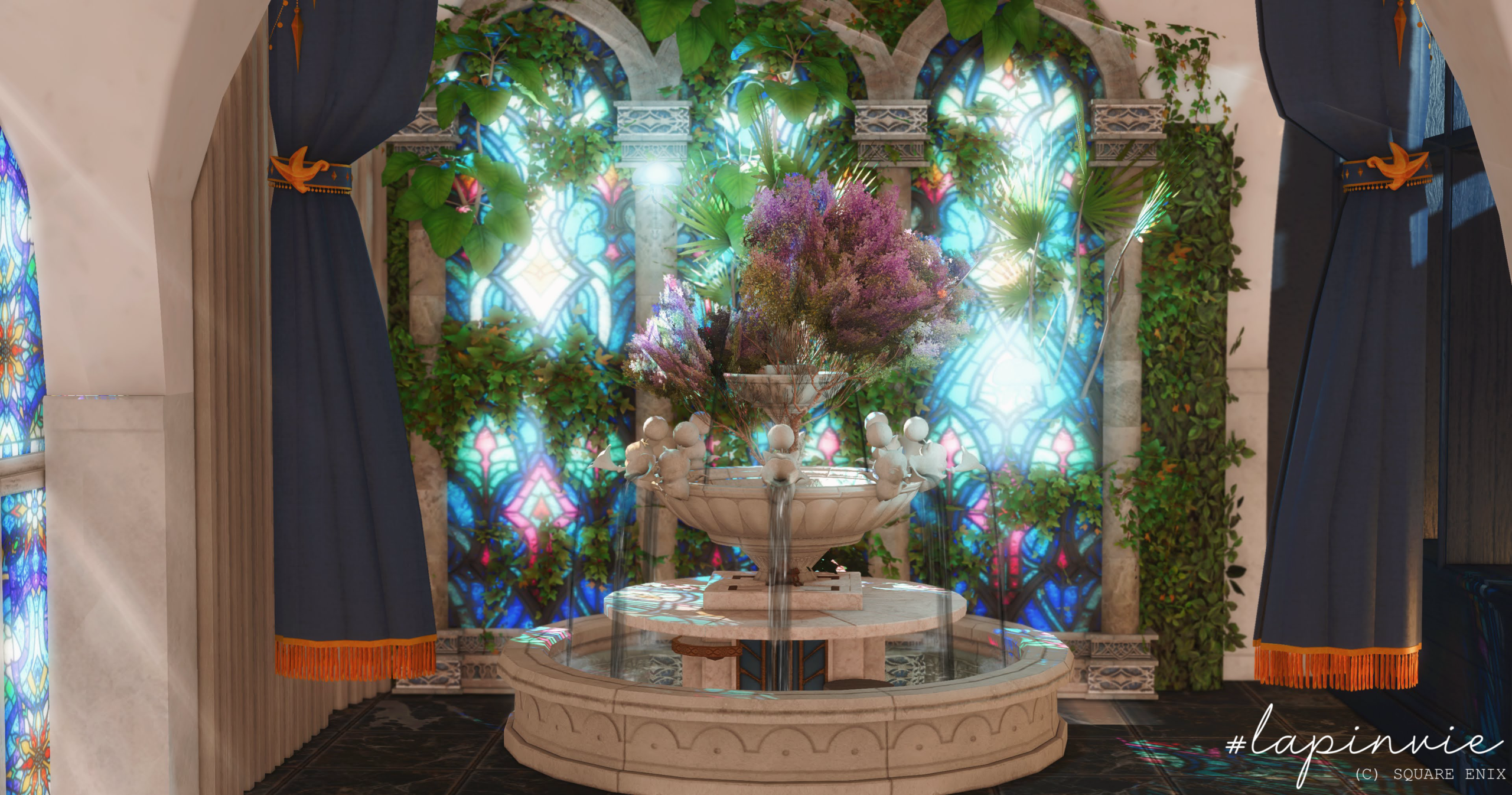 光と緑、クラシカルが融合した幻想的な空間。噴水やステンドグラス、ピアノなど、各撮影スペースがあります。