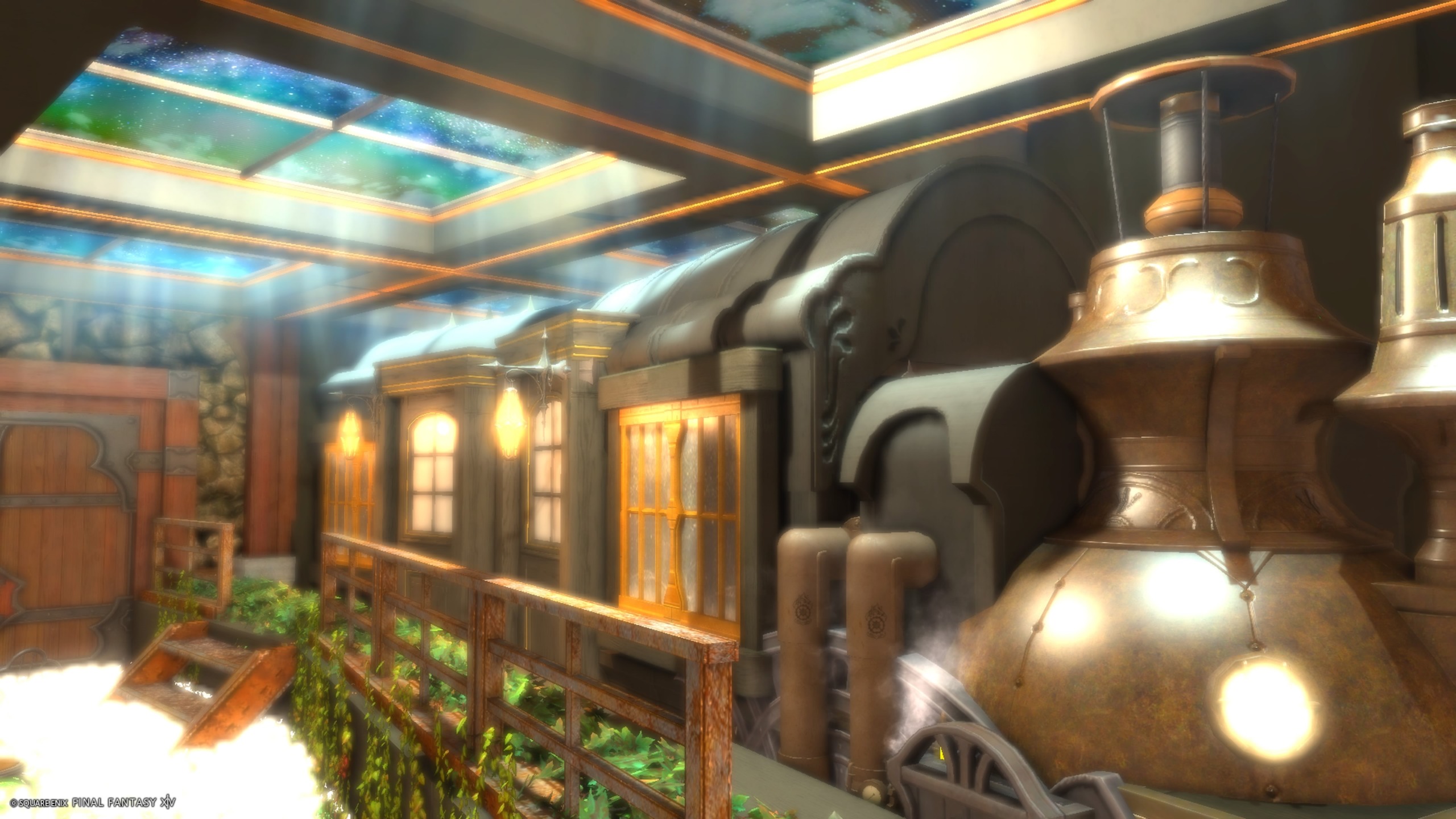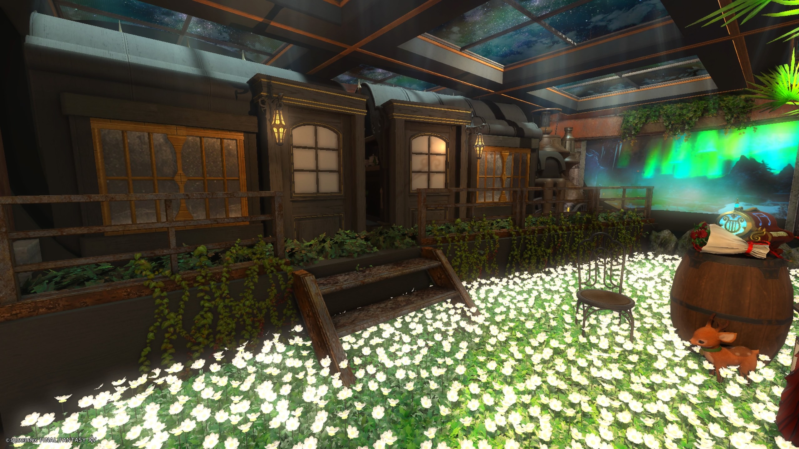 さびれた駅の寝台列車 by Ash_Lui(||BR||)🌐Gaia / Ifrit(||BR||)📍ミスト・ヴィレッジ25区59番11号室(||BR||)さびれた駅の深夜、オーロラの中を走る寝台列車です♫(||BR||)プラットフォーム手すりの上に3人座れます。(||BR||)騎士系カジュアルのマネキンショップでもありますので、(||BR||)SS、お買い物お(||BR||)#月夜okota(||BR||)https://studio-xiv.com/studio/76343/