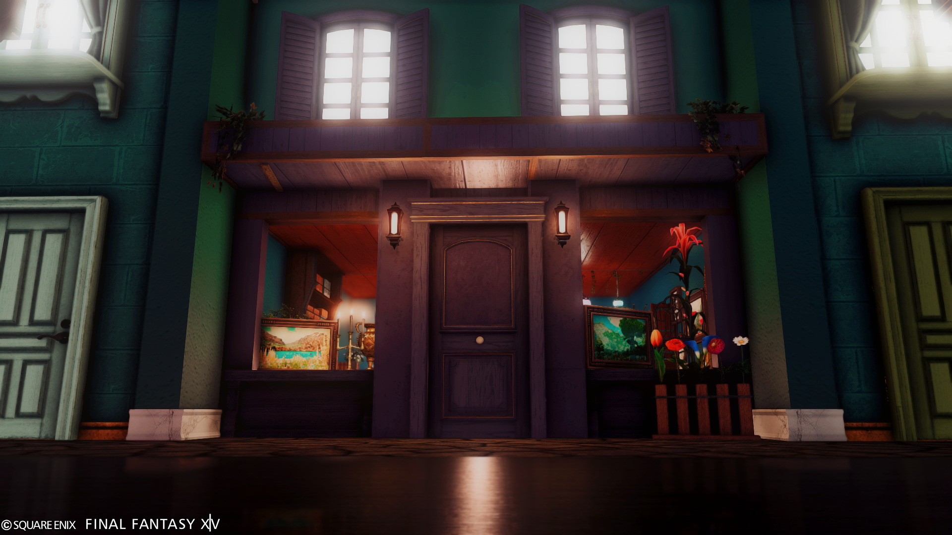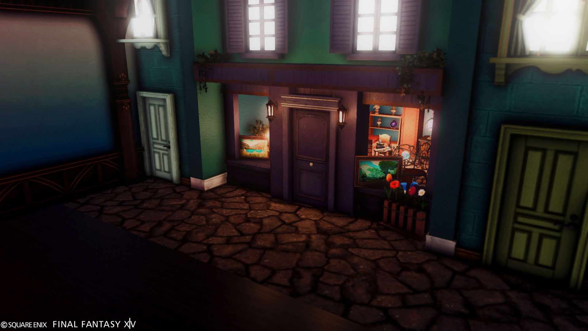 外に暖色系のライトを配置して撮ると、夜の雰囲気が増します。