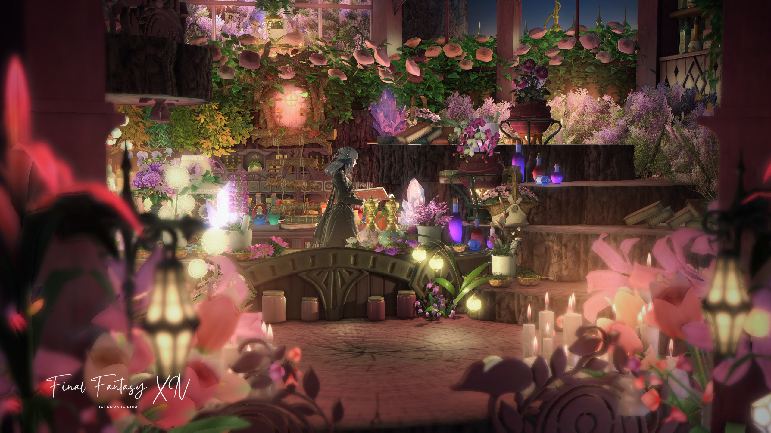 お花に囲まれたファンタジーな魔女のお店風スタジオです