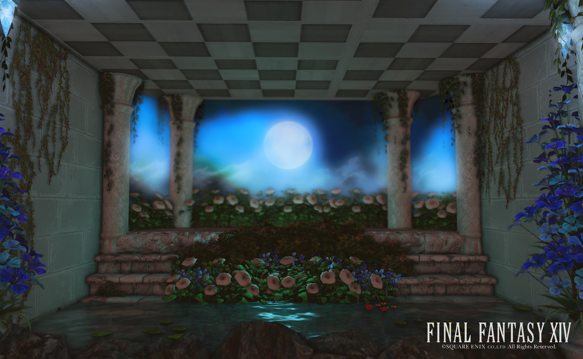 Sound Horizonの楽曲【死せる乙女その手には水月】をイメージした、月と神殿と水辺のスタジオです。