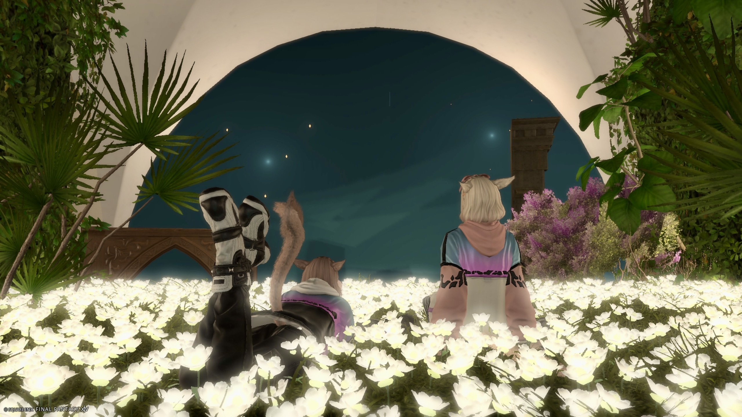 Night sky by G'sato tia(||BR||)🌐Meteor / Valefor(||BR||)📍ミスト・ヴィレッジ14区(||BR||)アパルトメント47号室(||BR||)夜空を眺めながら寝れる場所を作ってみました。(||BR||)草原には二人まで寝れるようになっていますので、大切な人やお友達と一緒にどうぞ(||BR||)#satoスタ(||BR||)https://studio-xiv.com/studio/77009/