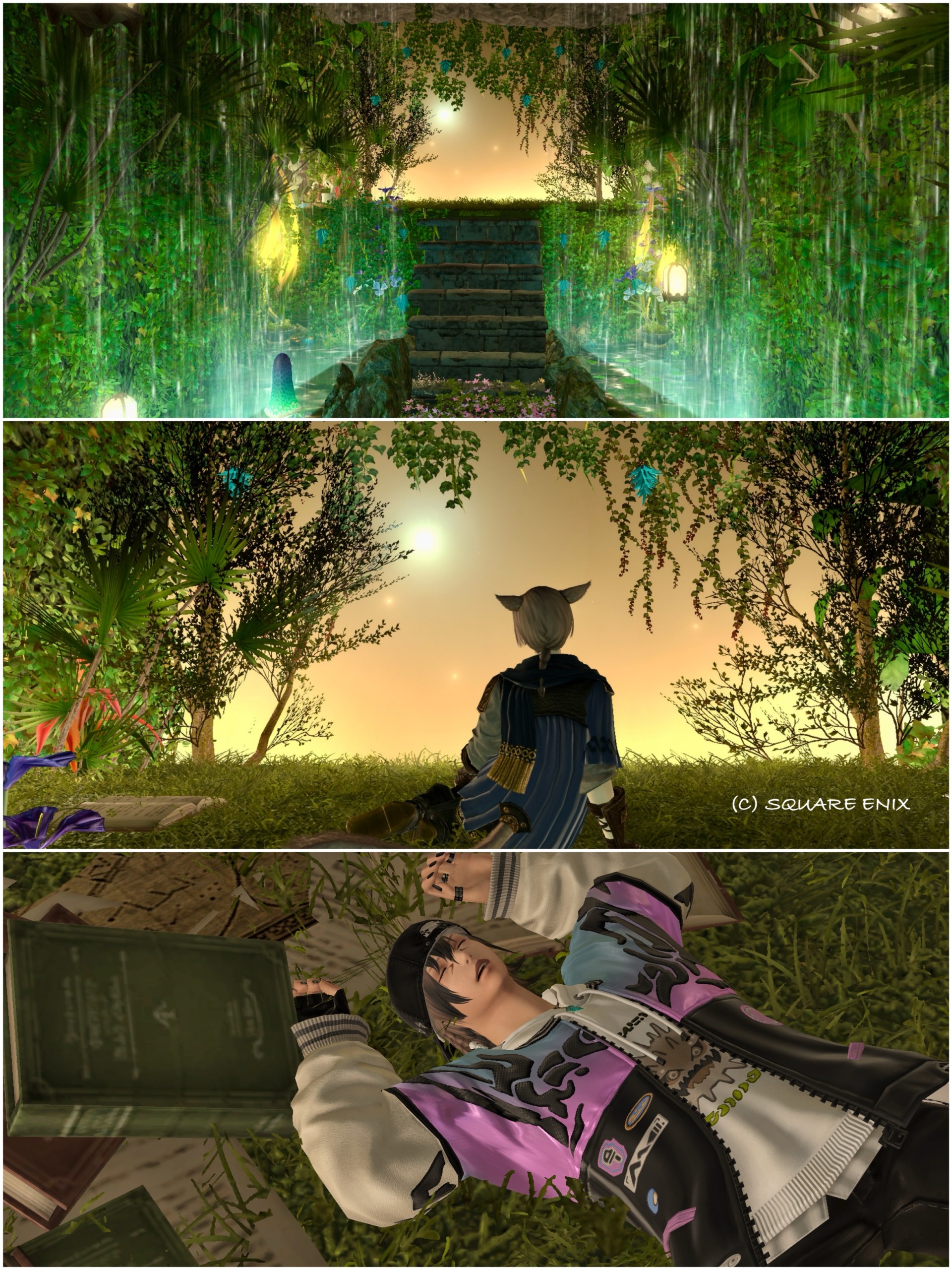 Sunset hill by G'sato tia(||BR||)🌐Meteor / Valefor(||BR||)📍エンピレアム1区(||BR||)アパルトメント(拡張街)46号室(||BR||)夕日の見える丘を作ってみました(||BR||)芝生の上は一名寝転がれ、手前の岩には数箇所座れる場所があります。(||BR||)#satoスタ(||BR||)https://studio-xiv.com/studio/77013/