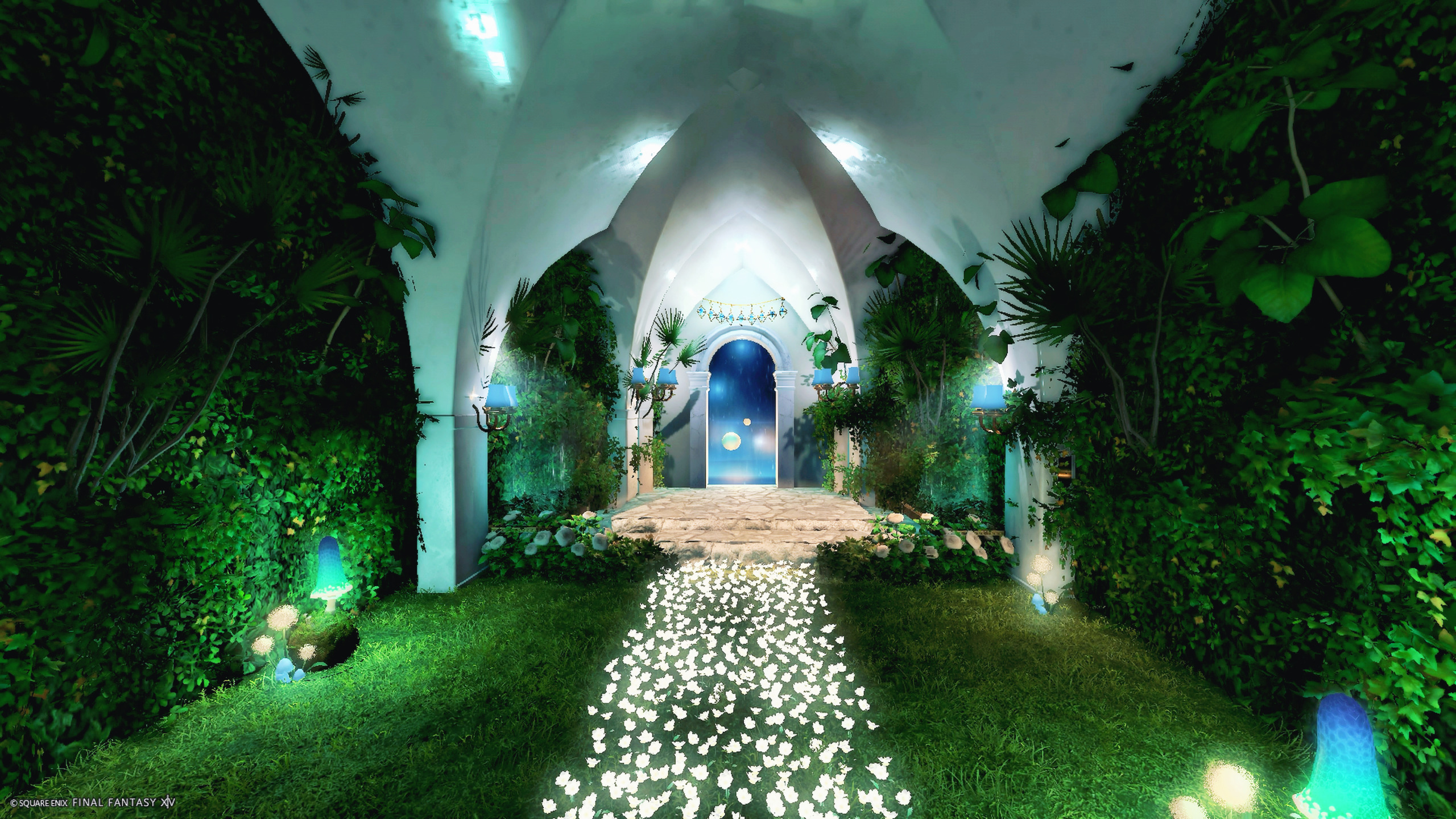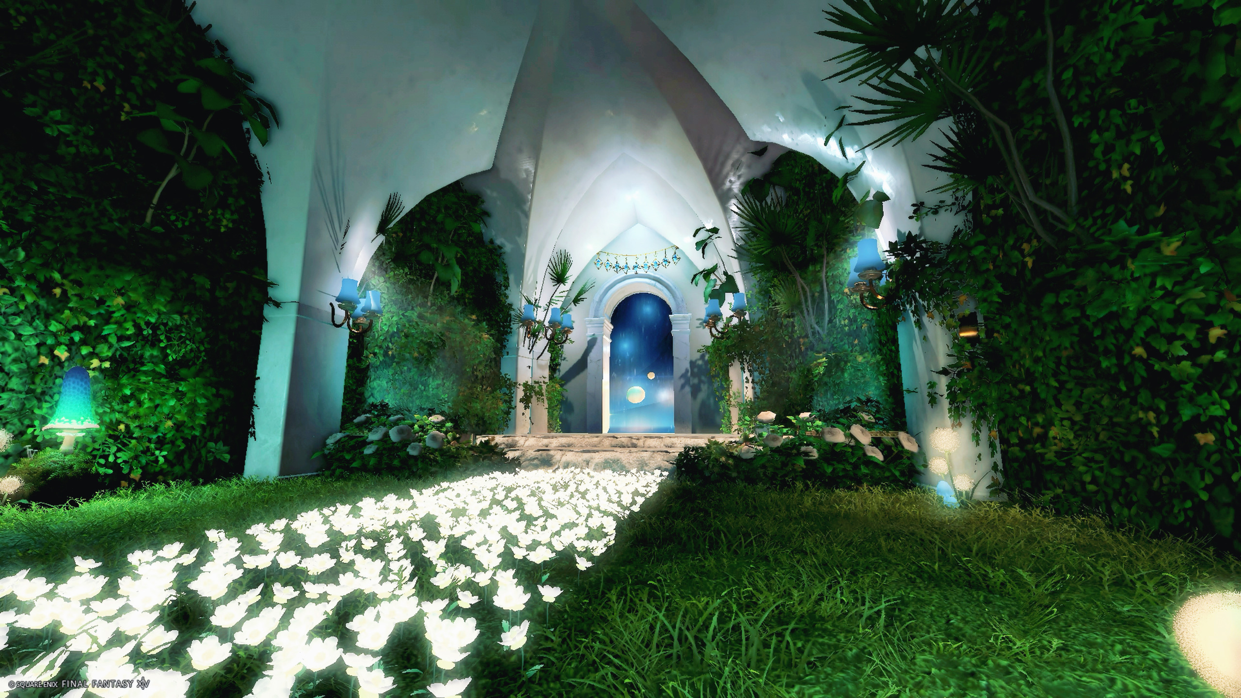 宇宙への路 by ウズメ(||BR||)🌐Mana / Masamune(||BR||)📍ラベンダーベッド9区(||BR||)アパルトメント41号室(||BR||)こういう謎の空間でワープするやつあるよね🤔(||BR||)グリパテがやすくて大量に手に入るので楽しくなって緑いっぱい心のゆくまま置いてたらコスモ爆誕してました!(||BR||) (||BR||)#u_house(||BR||)https://studio-xiv.com/studio/77172/