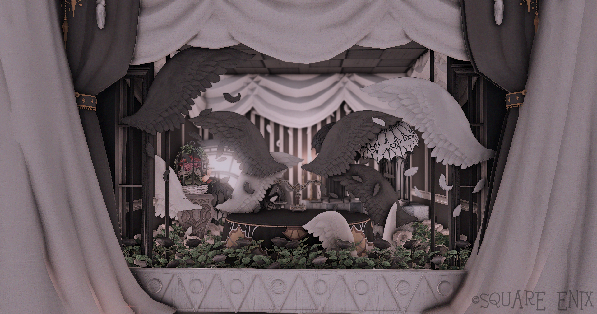 Monochrome by なち(||BR||)🌐Mana / Anima(||BR||)📍ラベンダーベッド29区(||BR||)アパルトメント(拡張街)12号室(||BR||)白×黒のスタジオに需要がありそうだったので作ってみました。(||BR||)台の上に立っていただいて武器を構えるのがオススメです👌🏻(||BR||)#Studio_Liznoir(||BR||)https://studio-xiv.com/studio/77226/