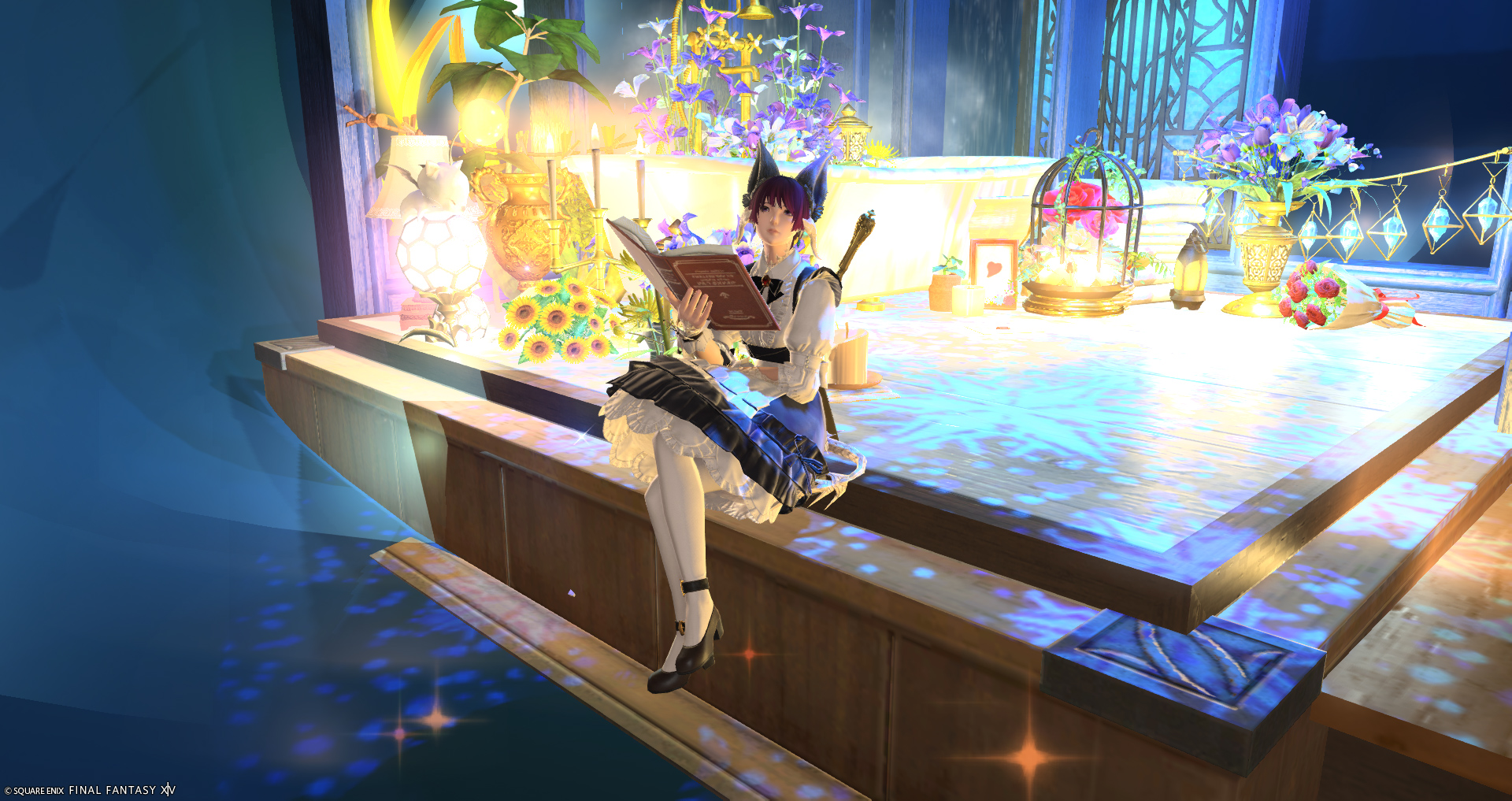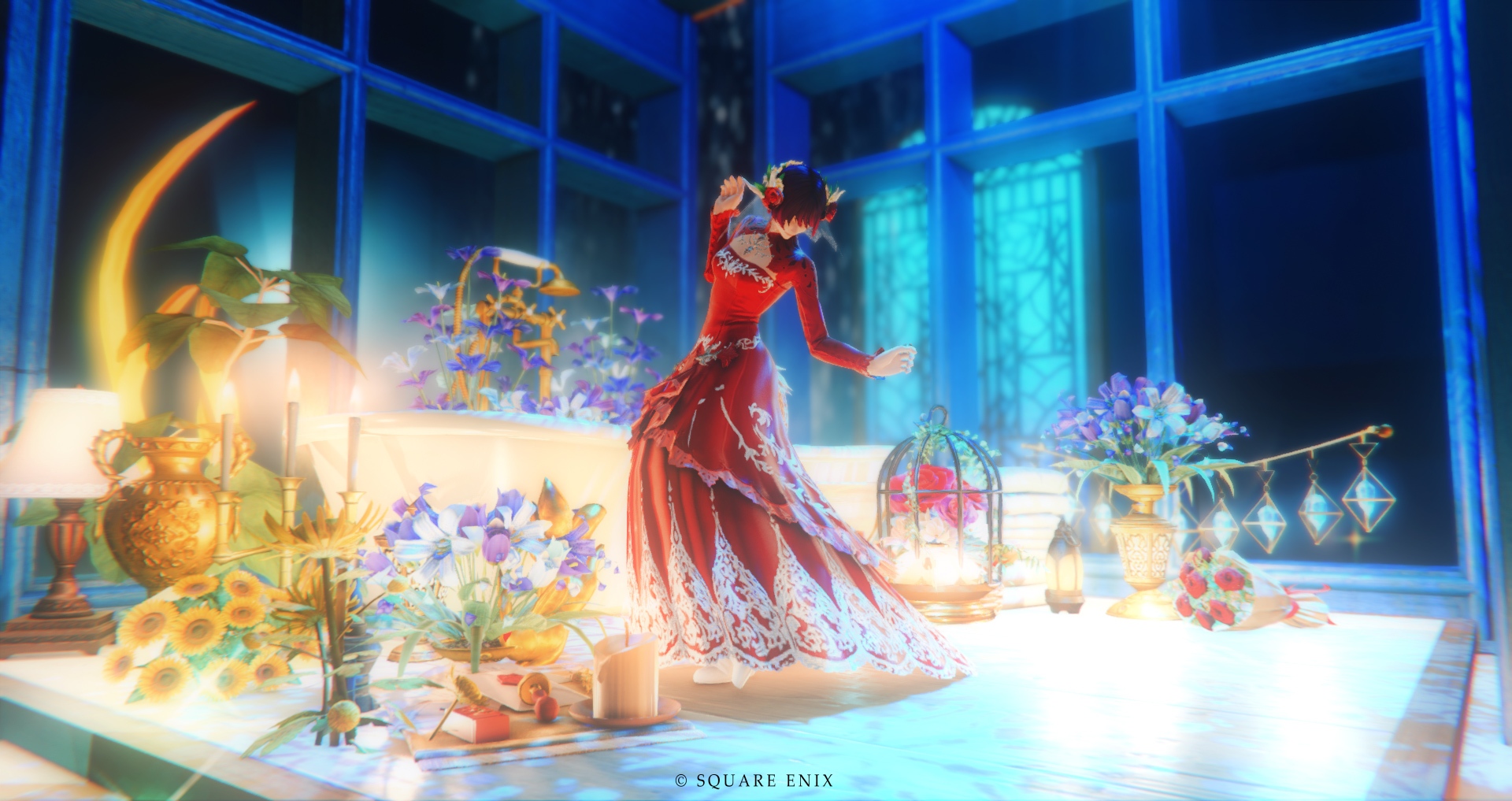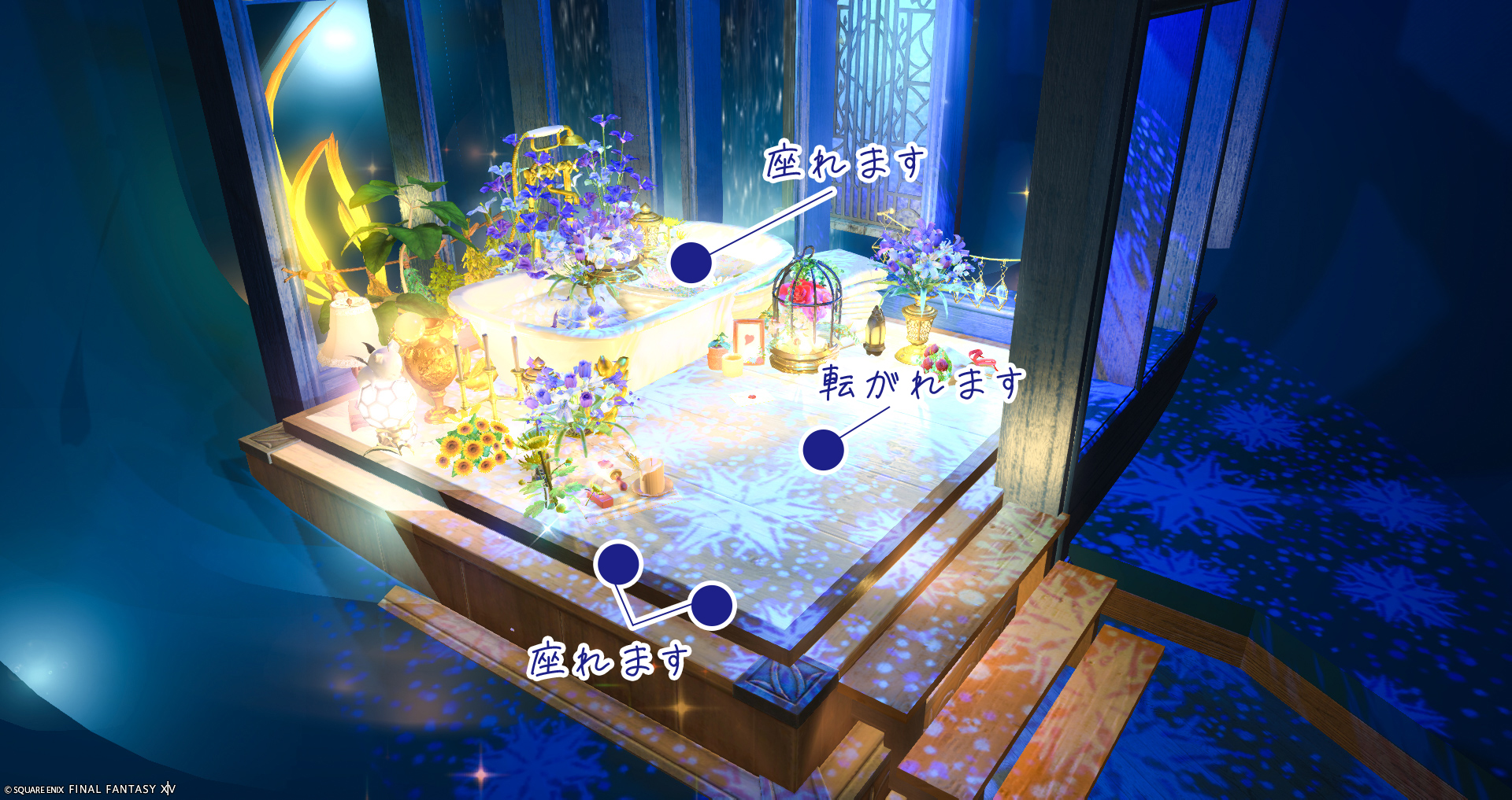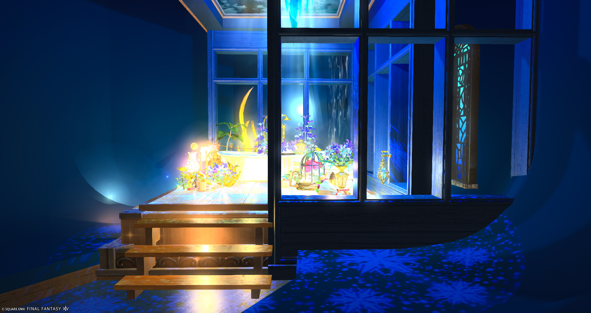 「月明かりと花の灯りが、静かな夜のバスルームを包み込む。