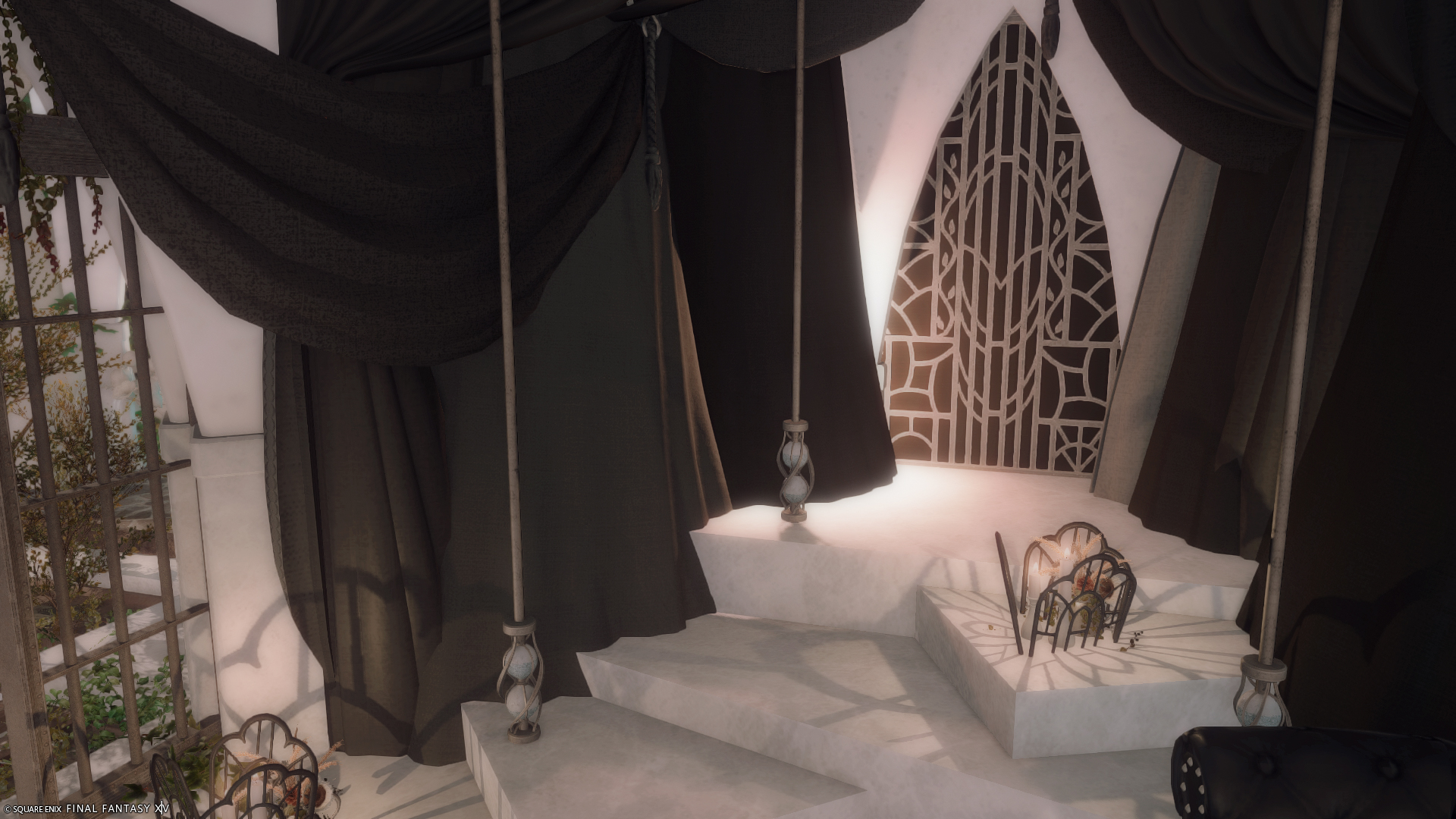 不凋花の園 by Newt(||BR||)🌐Elemental / Carbuncle(||BR||)📍ゴブレットビュート11区34番(||BR||)辺獄装備の似合いそうな中庭を作りました(||BR||)#にーくんハウス(||BR||)https://studio-xiv.com/studio/77404/