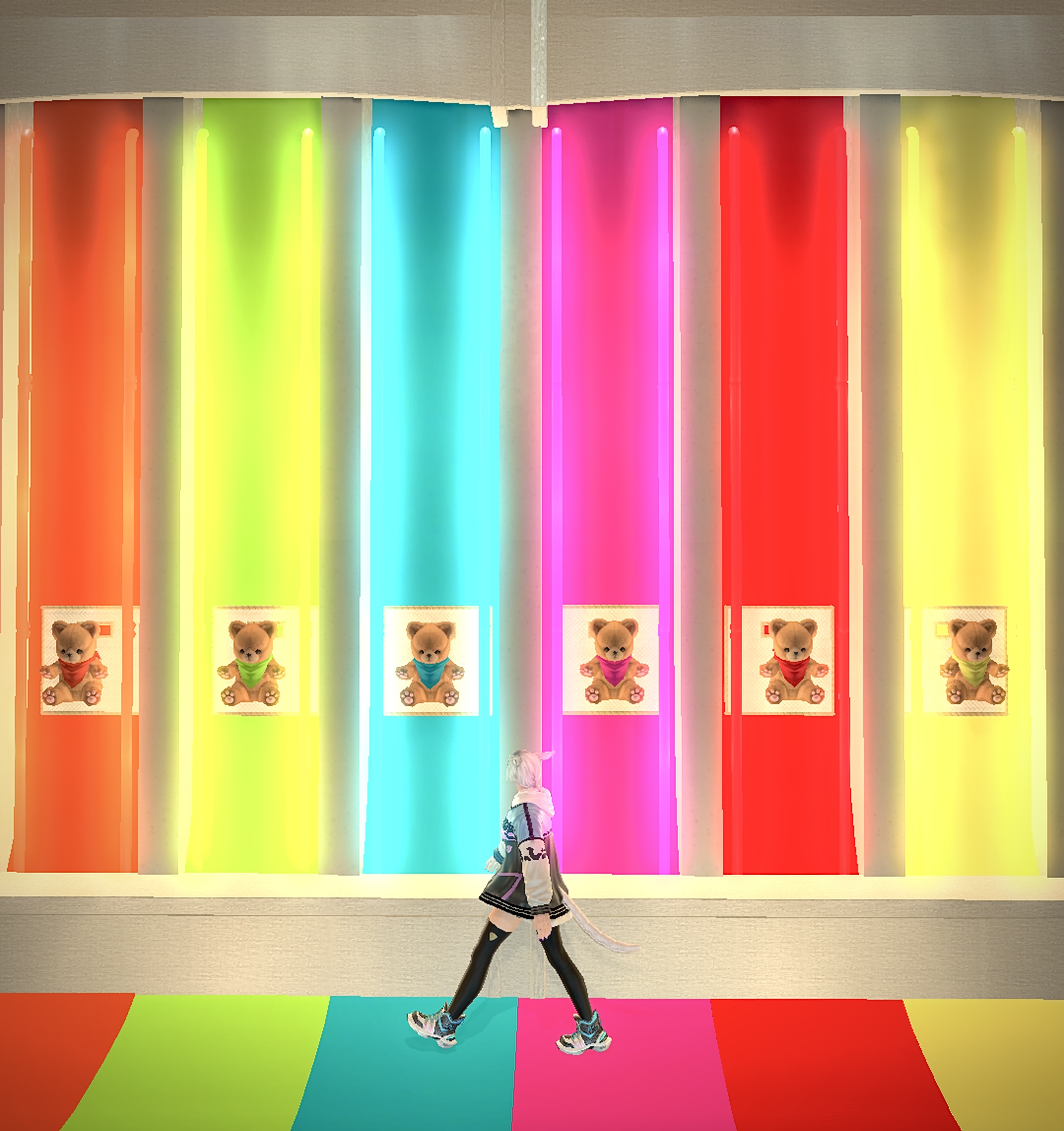 Pick Me Up by Sara(||BR||)🌐Elemental / Kujata(||BR||)📍ミスト・ヴィレッジ27区(||BR||)アパルトメント10号室(||BR||)虹🌈のようなウィンドウディスプレイを作りました(||BR||)白い枠には最大9人座れます(||BR||)#ambroom(||BR||)https://studio-xiv.com/studio/77553/