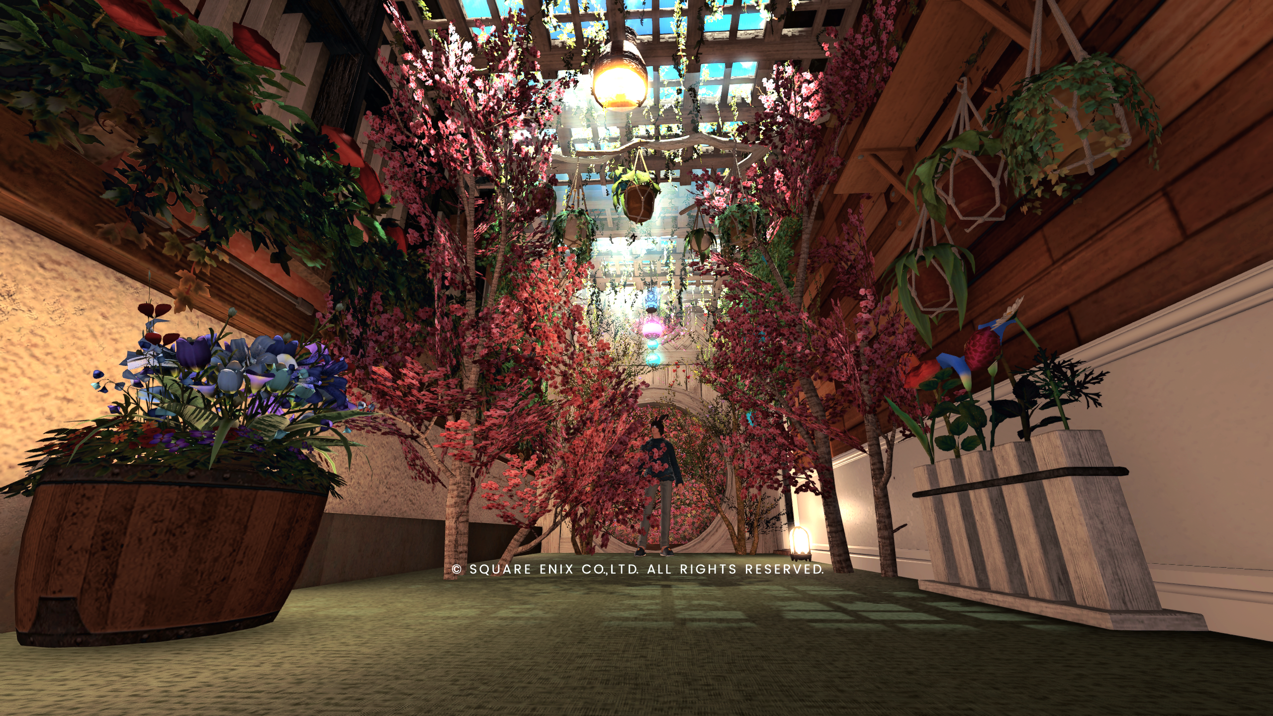 ラウンジに隣接する地下への通路は植物生い茂る中庭をイメージしました。喧騒に疲れたときは癒やされるかも?
