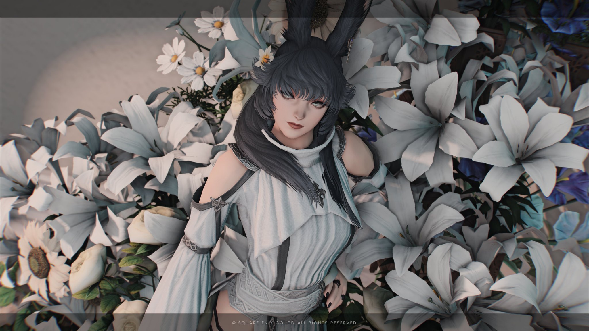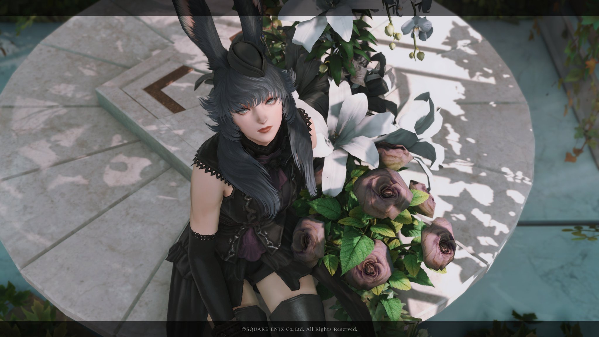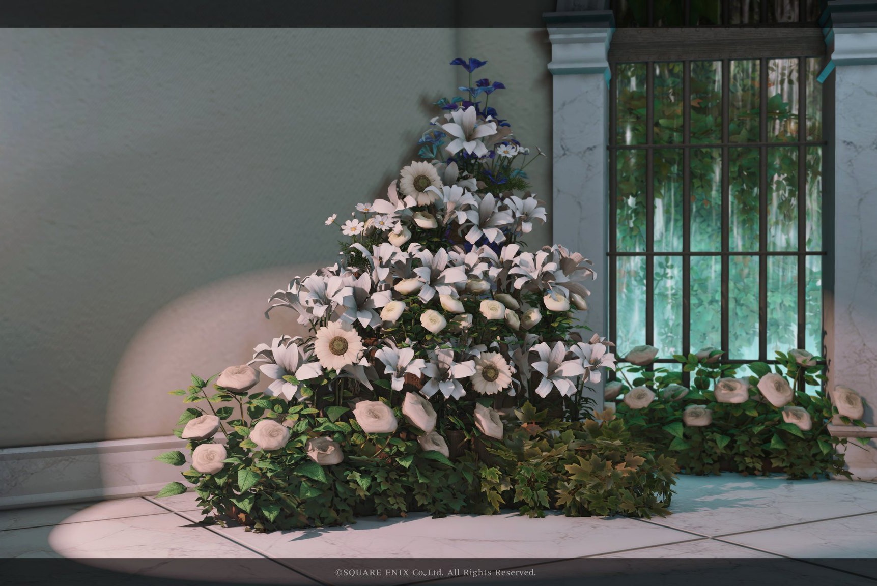月光花 by Lua(||BR||)🌐Mana / Hades(||BR||)📍ミスト・ヴィレッジ10区(||BR||)アパルトメント(拡張街)22号室(||BR||)白黒の小さめお花ブースです✲*゚(||BR||)お部屋の中央部は日中だと光が入るのでオススメです(||BR||)2人座れます(||BR||)(||BR||)お花を背景にご自由に撮影して頂けると嬉しいですꕤ.。(||BR||)#Luar_Flor14(||BR||)https://studio-xiv.com/studio/77746/